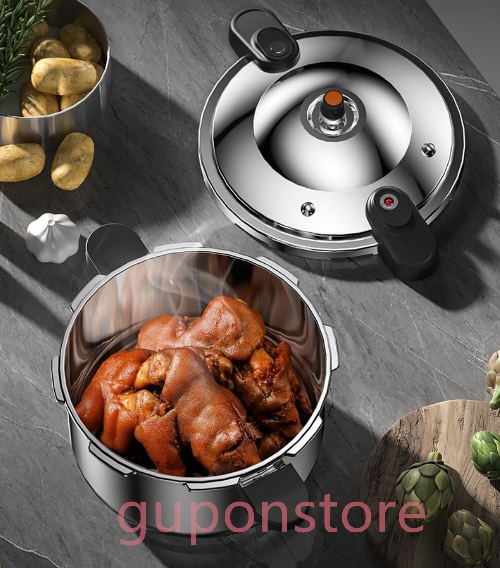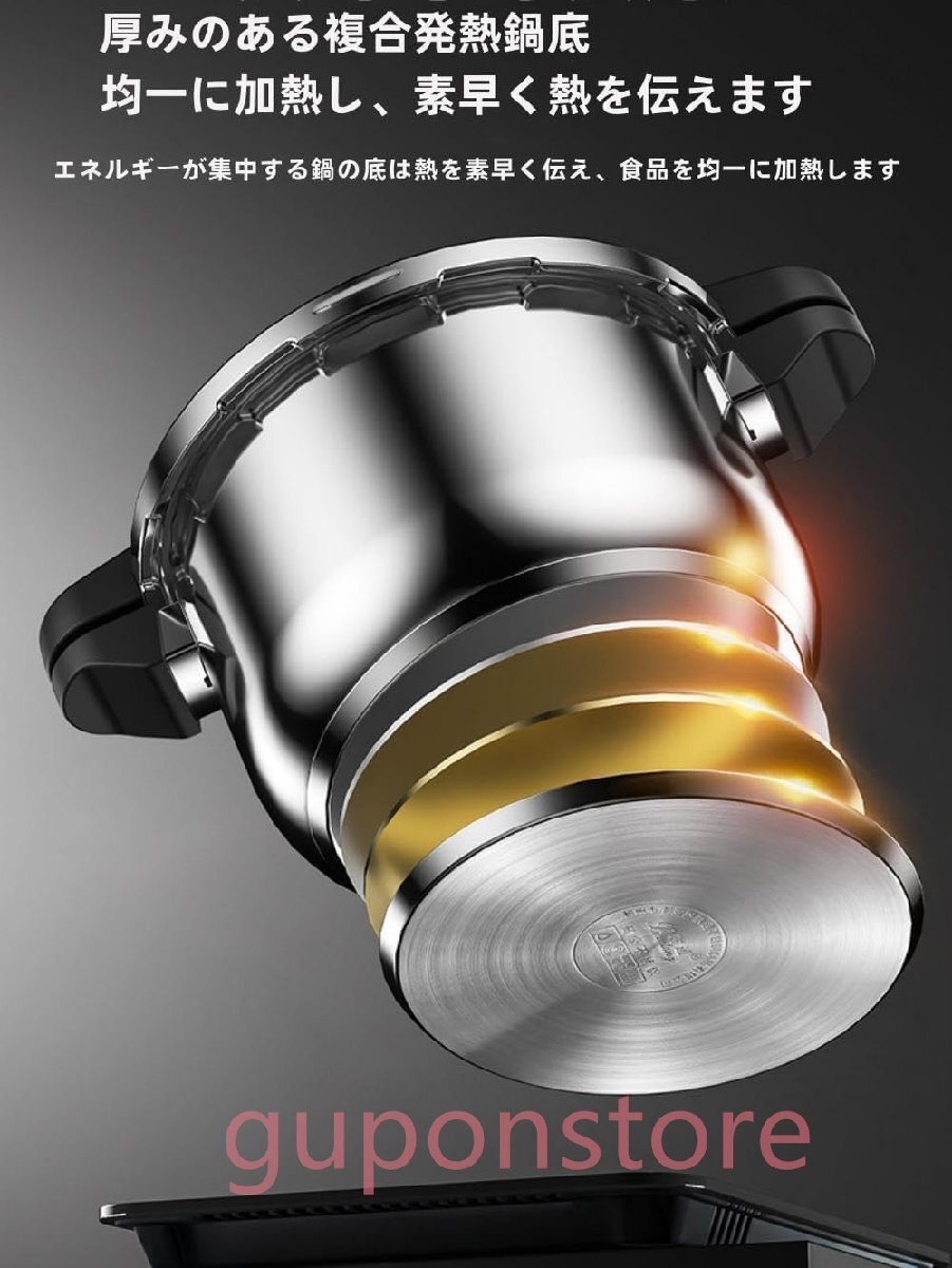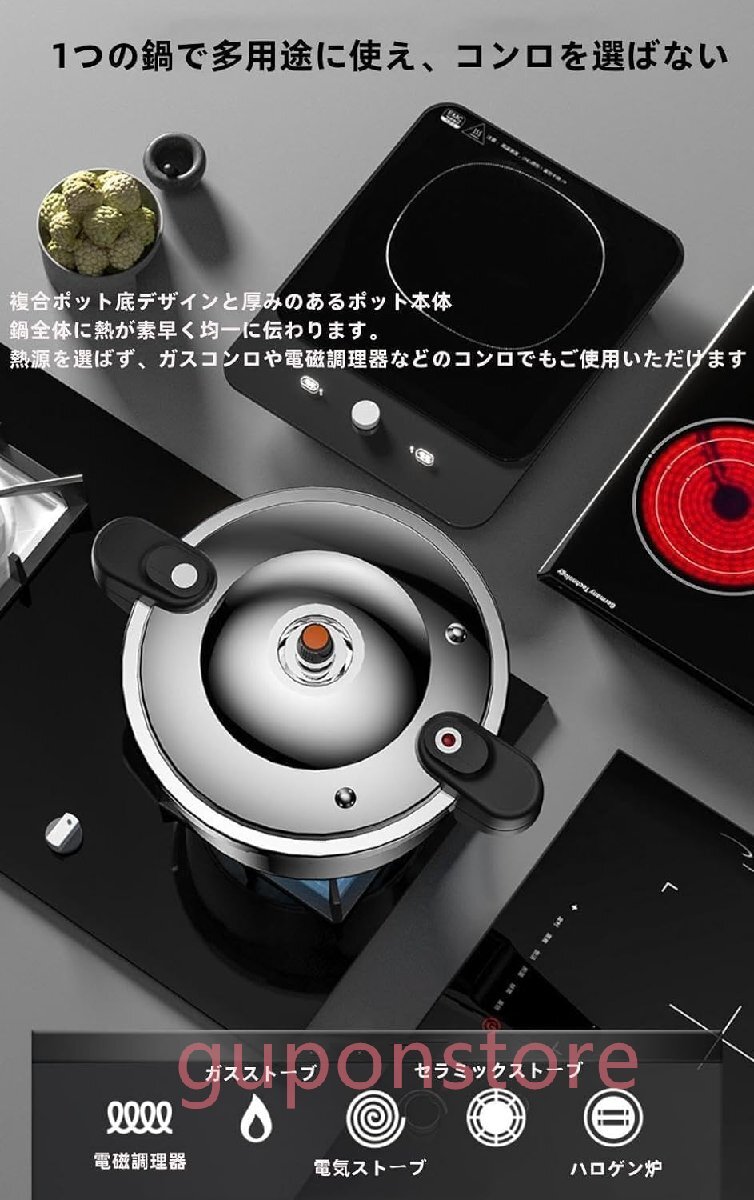 【安全性と耐久性】多機能の完璧な融合。 304ステンレス鋼の圧力鍋は、安全性と防爆機能を備えており、安心して調理できるキッチンの必需品です。 汎用性が高く、さまざまなストーブに使用できます。