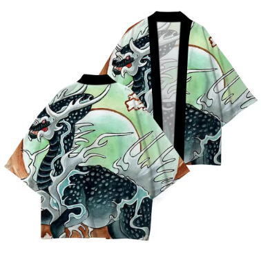 女性のための伝統的なプリント着物,日焼け止め,快適なカーディガン,柔らかい生地,ビーチや休暇用 色: 水色 麒麟 サイズ: XXS