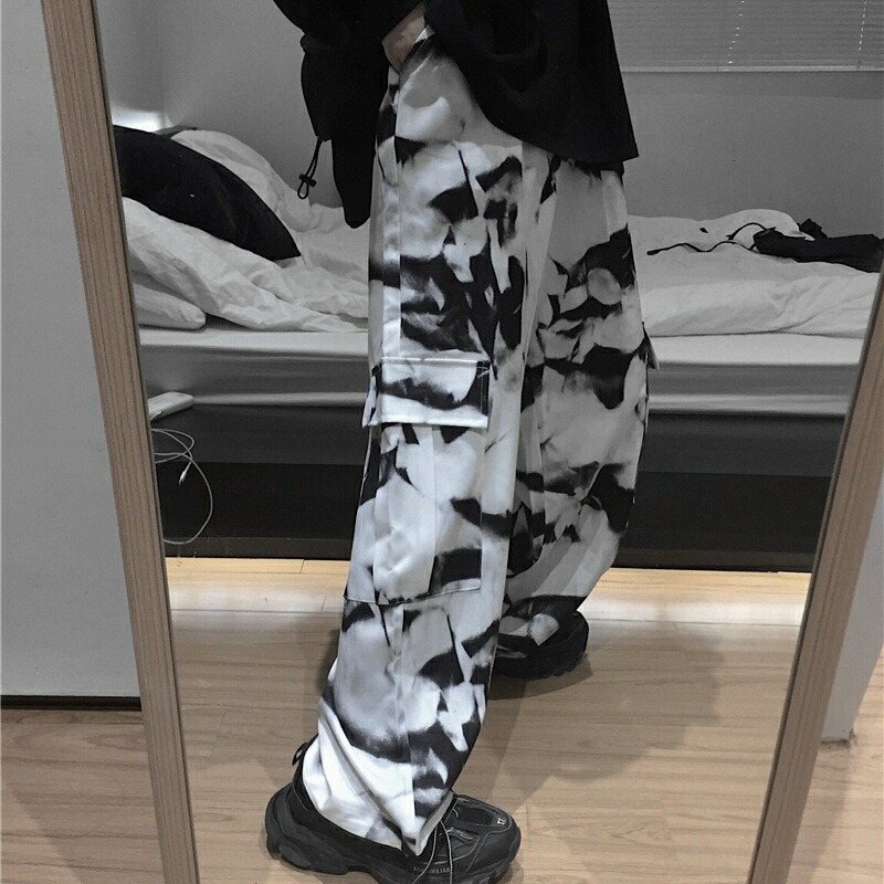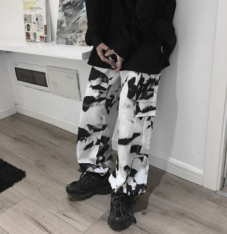 カーゴパンツ タイダイ モノクロ 韓国ファッション ダンス衣装 POP ズボン ボトムス メンズ レディース ユニセックス 男女兼用