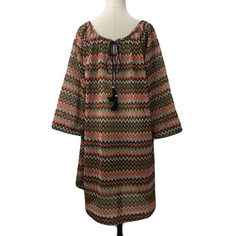 未使用品 マイダルタニアン my D'artagnan ワンピース チュニック フレア ミニ 総柄 透かし編み マルチカラー 長袖 44 オレンジ ピンク