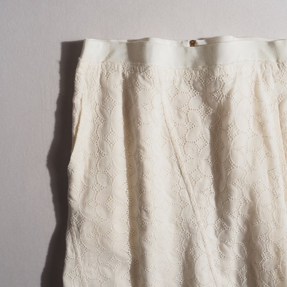 フラワーレース アシンメトリー ロングフレアスカート ホワイト 38