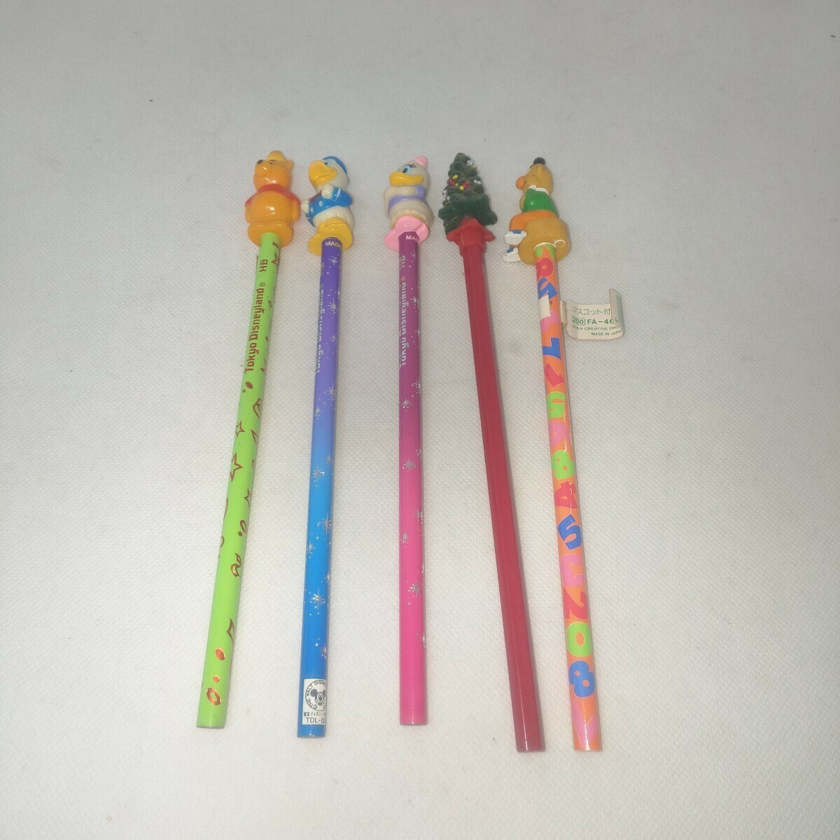 えんぴつ ディズニーキャラクター ソフビ付鉛筆 など 5本まとめて 東京ディズニーランド3本+その他2本 当時物 昭和レトロ 匿名配送