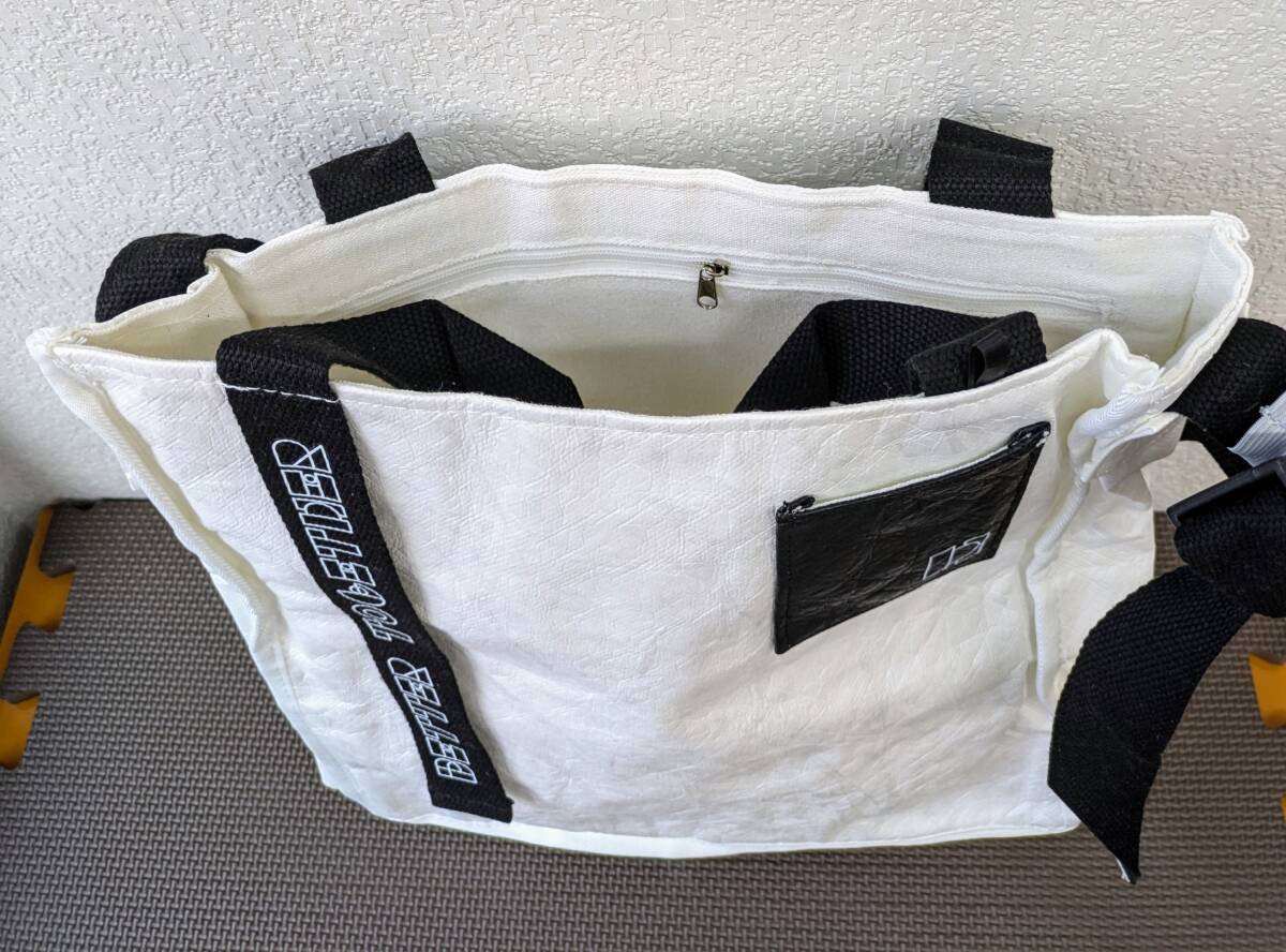 ・手持ちでも肩に掛けてもよく、大容量のマチ付