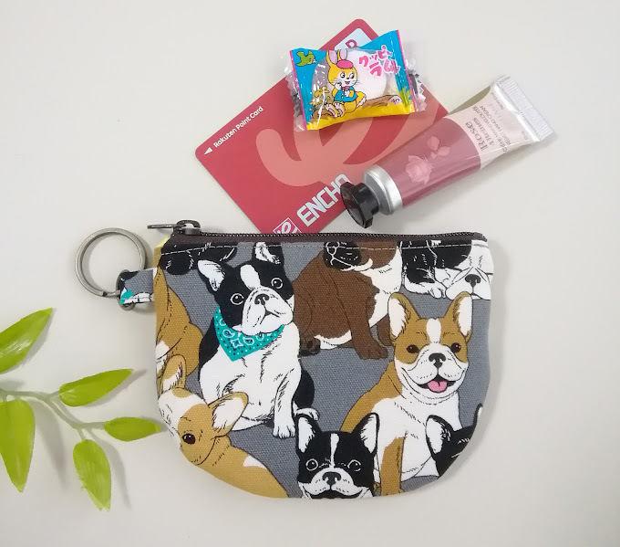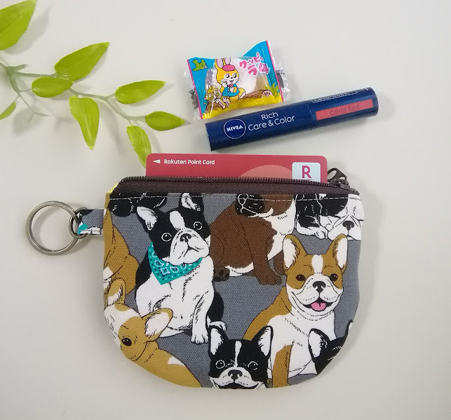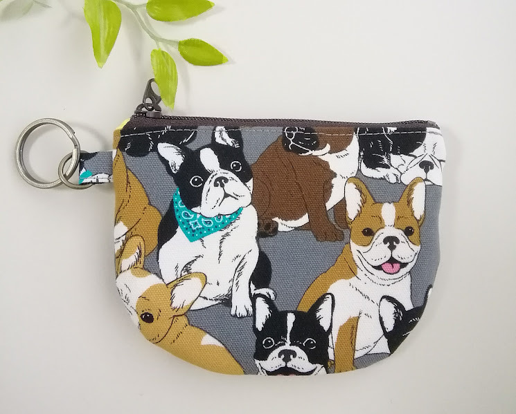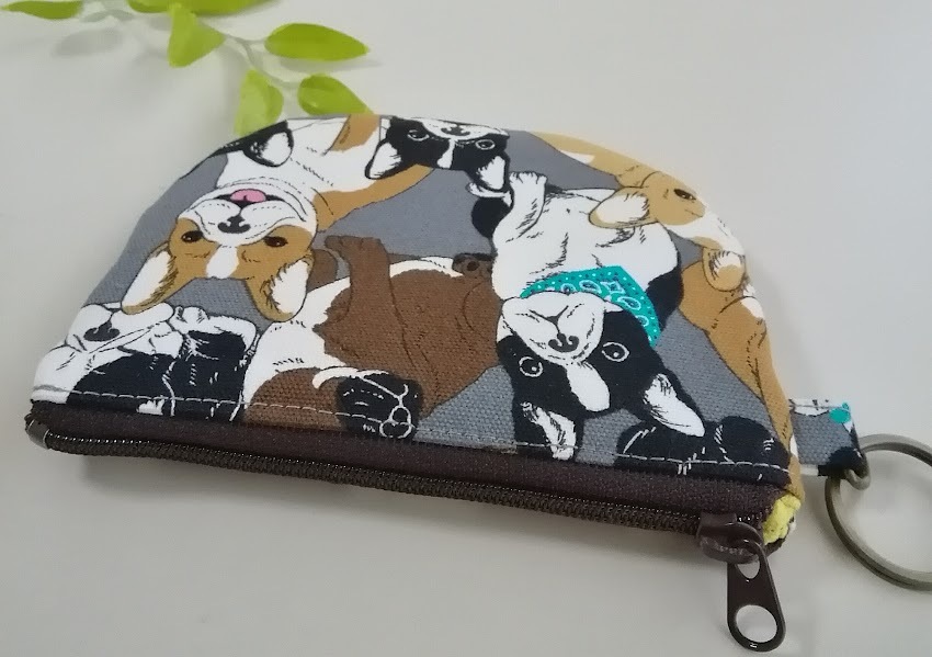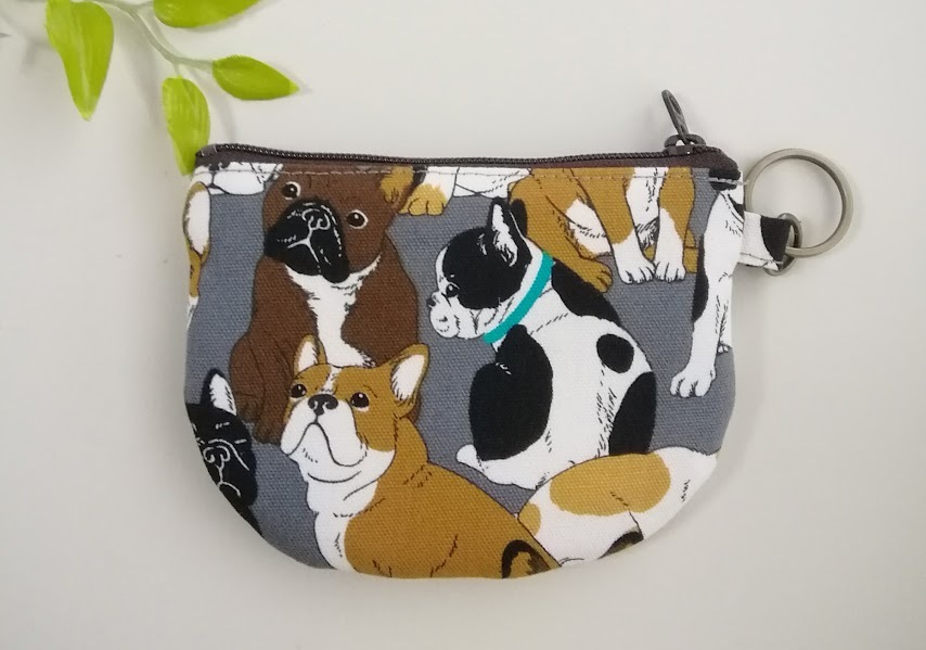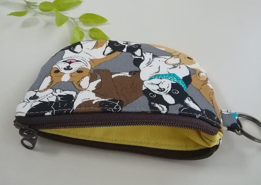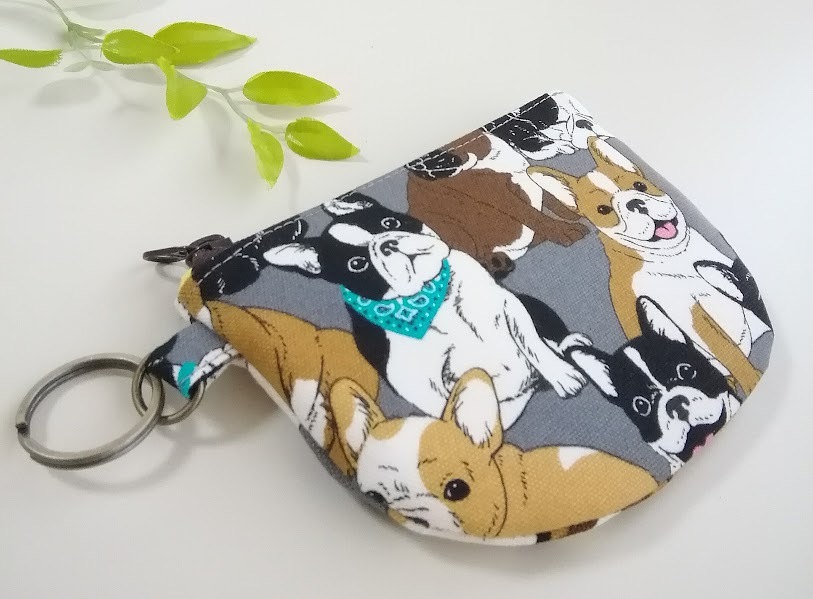 ハンドメイド〈カード収納OK〉半円フラットポーチ フレンチブルドッグ*犬柄〈12×9〉