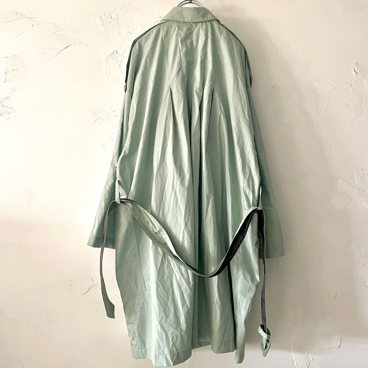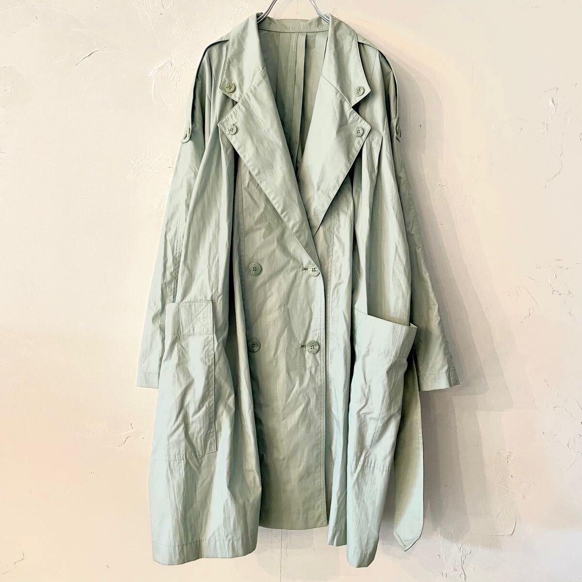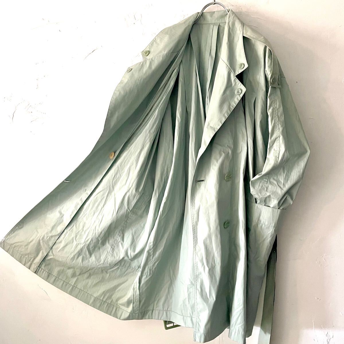 5 ヴィンテージ オーバーサイズ ライトブルー タックコート コットン35%ポリ 65% ダブル チェスターコート ベルト付 L レディース古着になります。