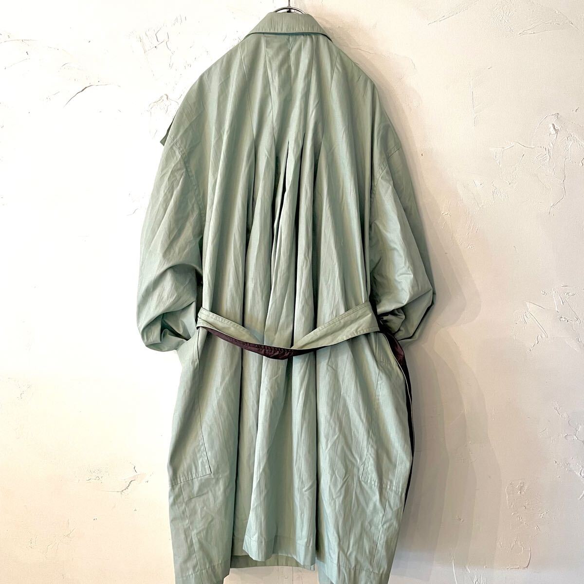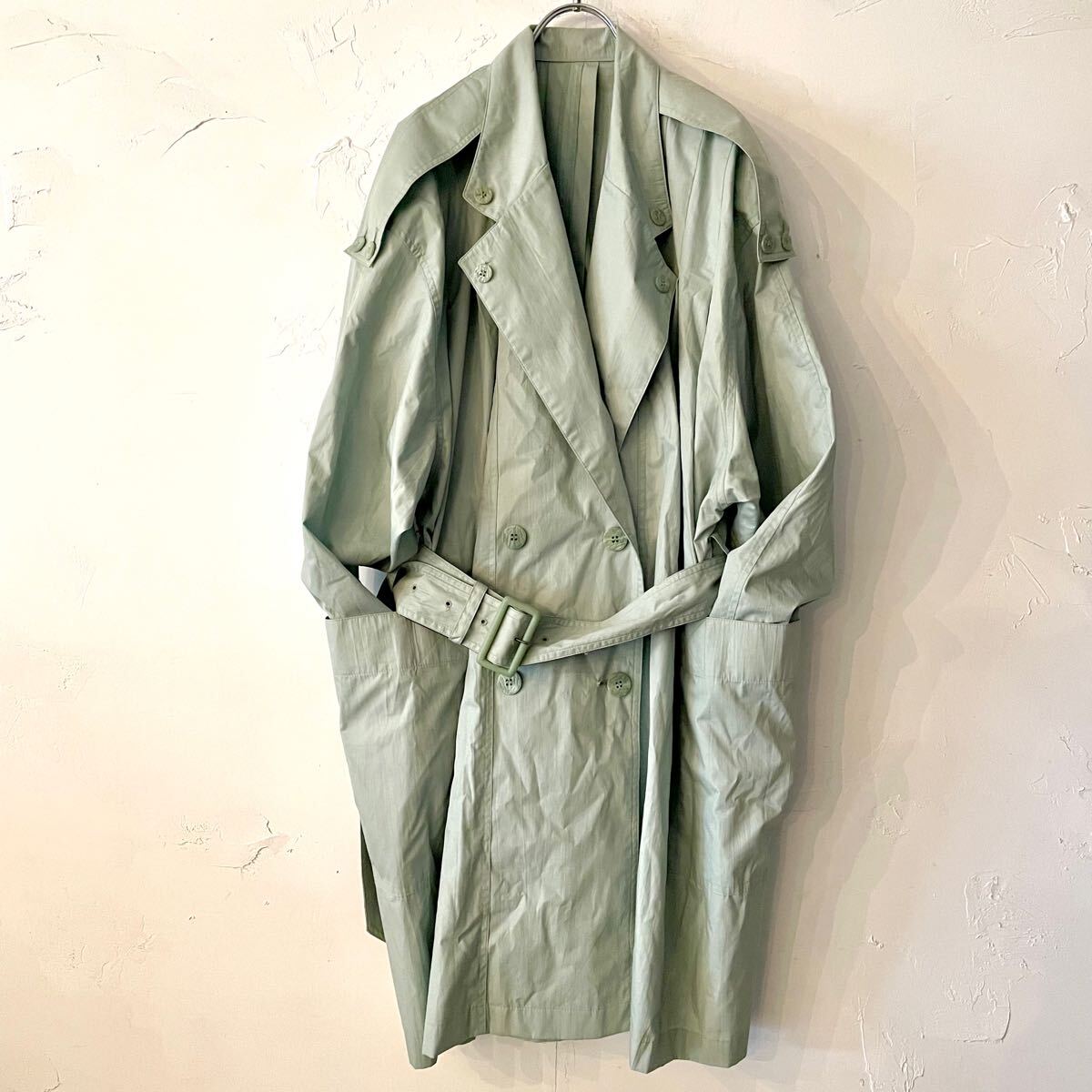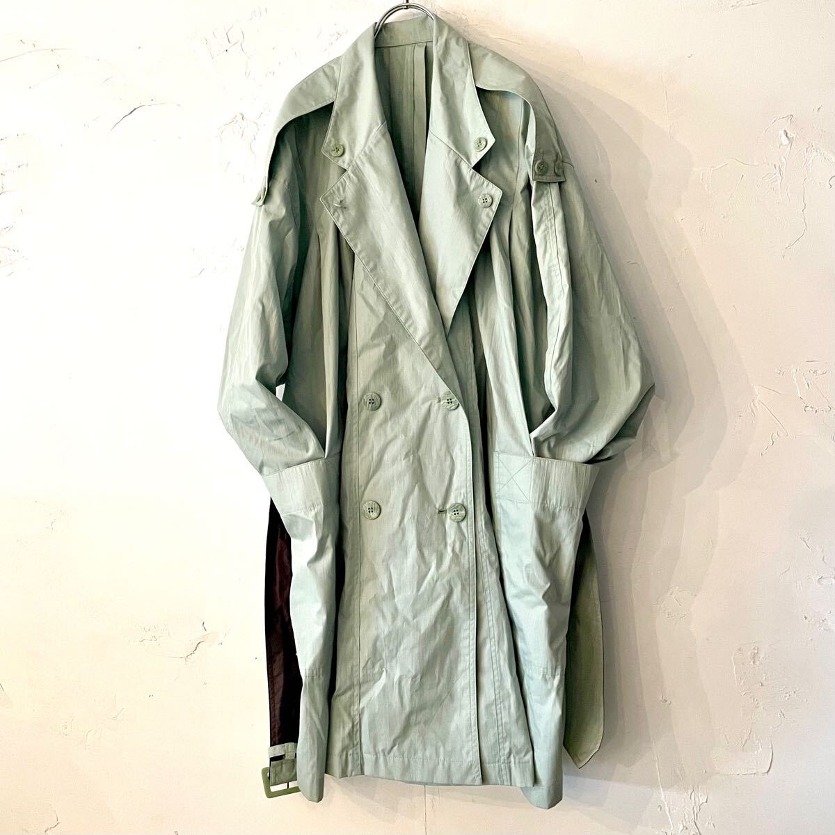 5 ヴィンテージ オーバーサイズ ライトブルー タックコート コットン35%ポリ 65% ダブル チェスターコート ベルト付 L レディース古着になります。