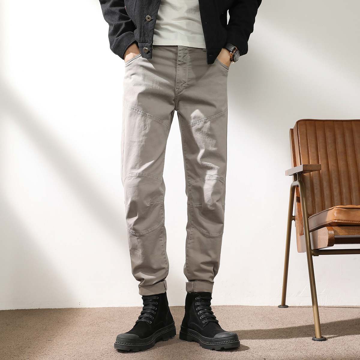 新品36 グレー綿パン チノパン メンズ カジュアルロングパンツ無地 スタイリッシュ ストレッチ入り カッコイイ 動きやすい ズボン ボトムス