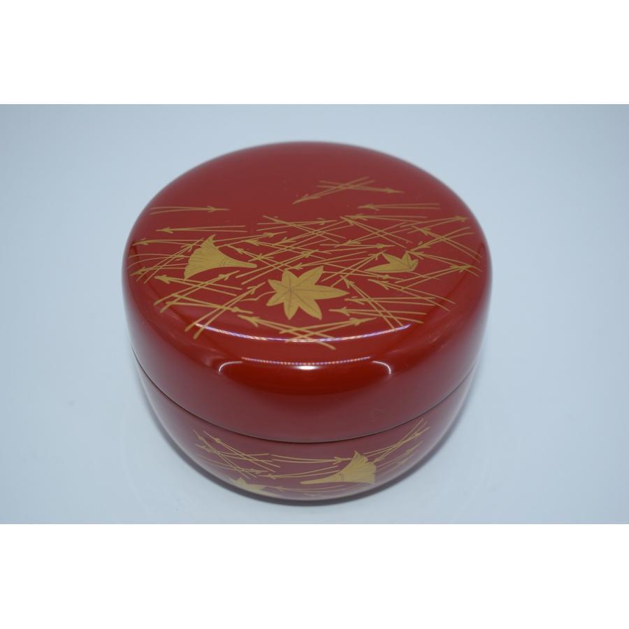 茶道具 朱 吹寄蒔絵 平棗 茶道 t 径8.5cm 高5.8cm