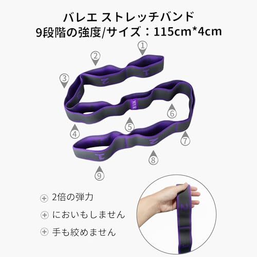 「ストレッチバンド フィットネスバンド レッグストレッチャ 高弾性 9段階の強度 男女共通のストレッチベルト バレエ/ヨガ/ダンス/体操/バレエ」▼789007982426▼(商品説明)パプル/-/-・Color:パプル・9つの強度設計サイズ:長さ115cm、幅4cm、9段階の強度、男女共通のストレッチベルト。素材:頑丈さと耐久性を兼ねたナイロン +ラテックスを採用し、お肌に優しく摩擦熱を最小限に抑えます。・手軽使用115cm 長い9独立したストレッチルプでは、個の番号付きルプは、ストレッチの進行状況を確認するのに役立ちます。バックルの革紐とは対照的に、異なった伸張のためのヨガの革紐を停止し、調節する必要がない。初心者の方や、今までできなかったポズに挑戦したい方におススメ・簡単に使え数秒の準備ですぐに使用可能、持ち運びも簡単、ポタブルストレッチマシンにも変身汗で汚れてしまった場合は洗濯も出来ます。肩、腕、筋トレ、お尻、ヨガ、ピラティス、足、背、エクササイズバンドで全身の運動はできます、ジムへ行く必要もないし、時間とお金を節約できますし。・適用範囲ラテン