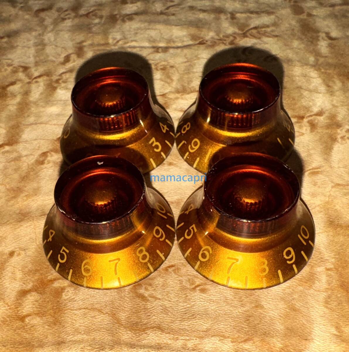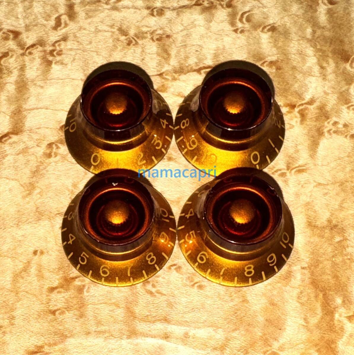 Guitar Bell Top Hat Knob Amber Gibson Inch Size ベル トップ ハット ノブ ギブソン サイズ インチ 規格 アンバー 合計= ノブ4個 Set *その他のノブパーツも出品中です! ノブ パーツ 商品各種取り揃えて出品中! |