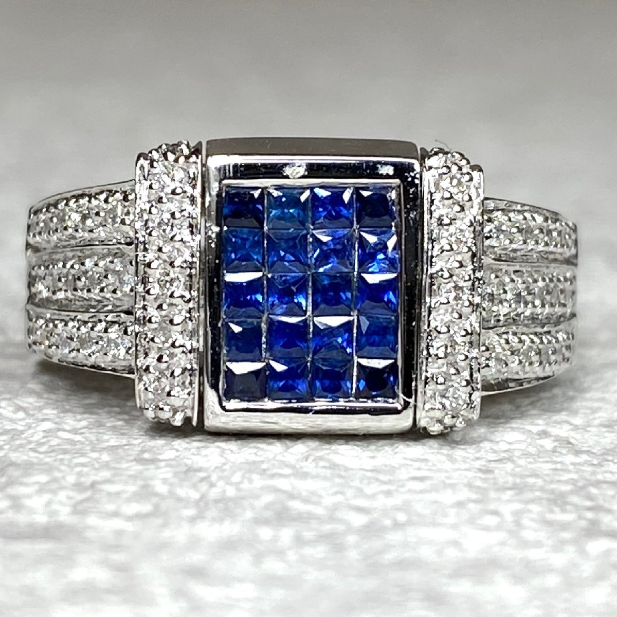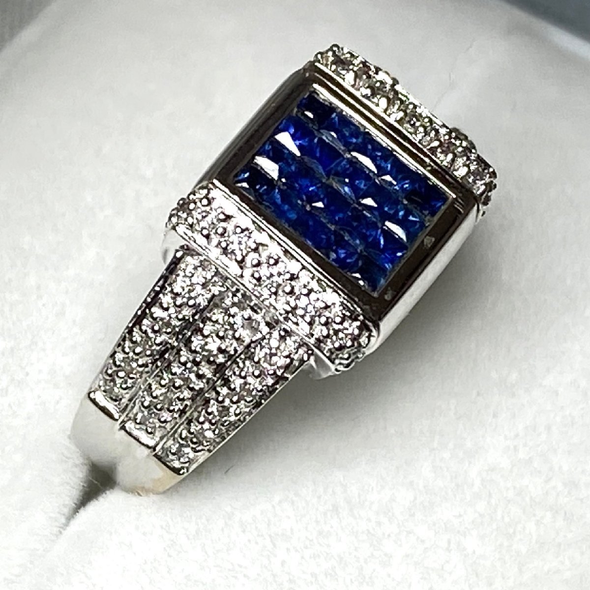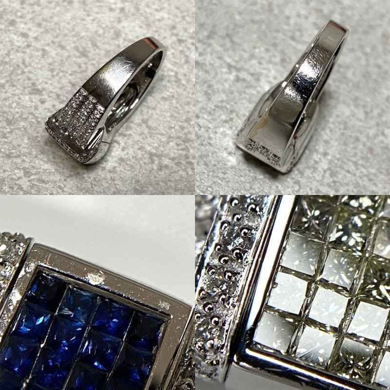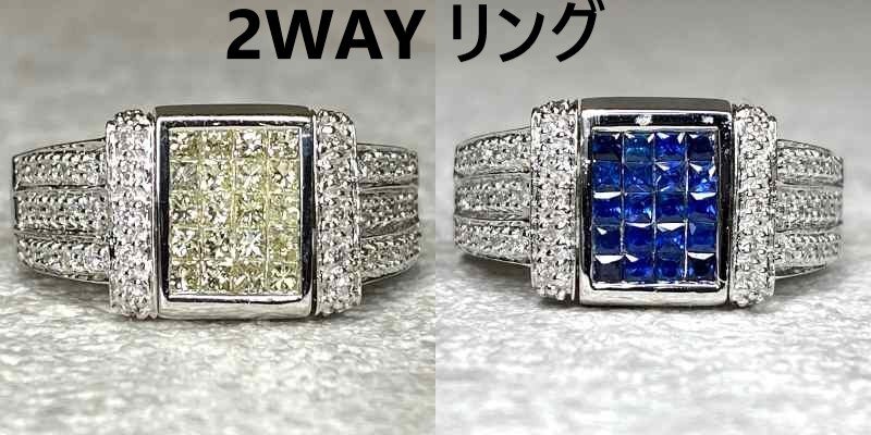| ☆【KJC】K18/WG 2Way ファッションリング プリンセスカット他ダイヤ0.65ct/サファイア0.35ct リング 指輪 サイズ約12番 | ||