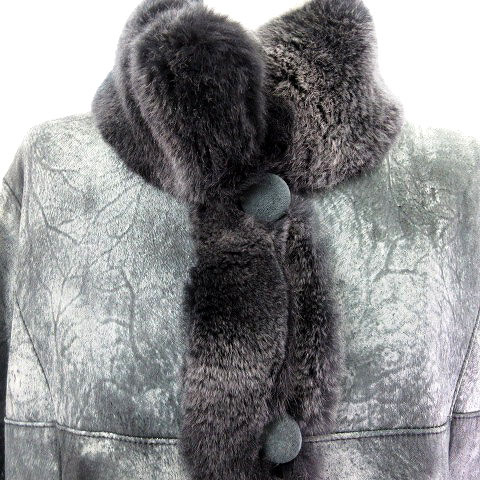 ラビットファーコート ジャケット スタンドカラー F グレー レディース