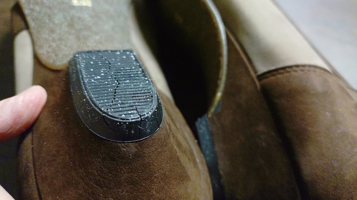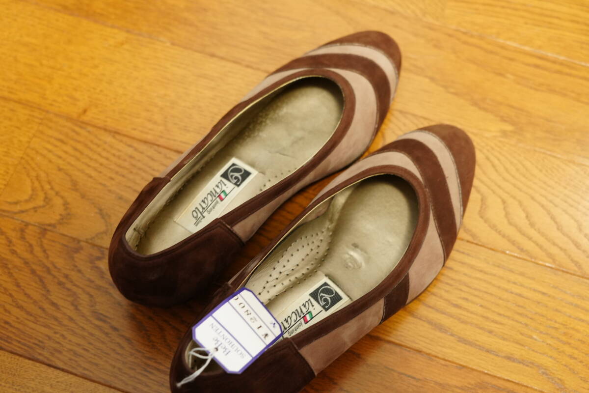 未使用品ですが長期保管品のためノークレームノーリターンでお願いします。 かかと部分と中敷き部分にひび割れが生じています。 リペア前提でご購入ください。