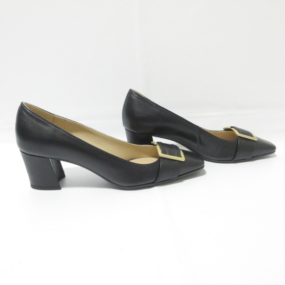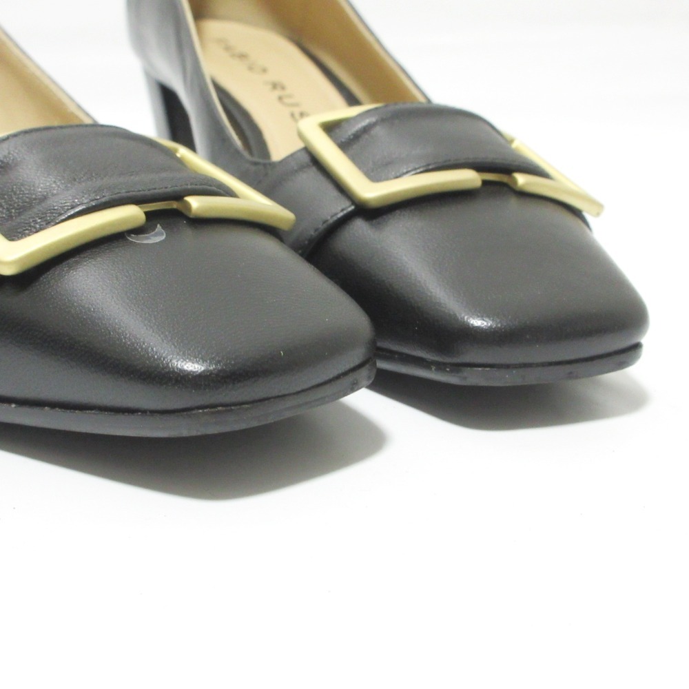 商品名:FABIO RUSCONI ファビオルスコーニ レザー メタルバックル スクエアトゥ チャンキーヒール パンプス 37.5 約24cm ブラック