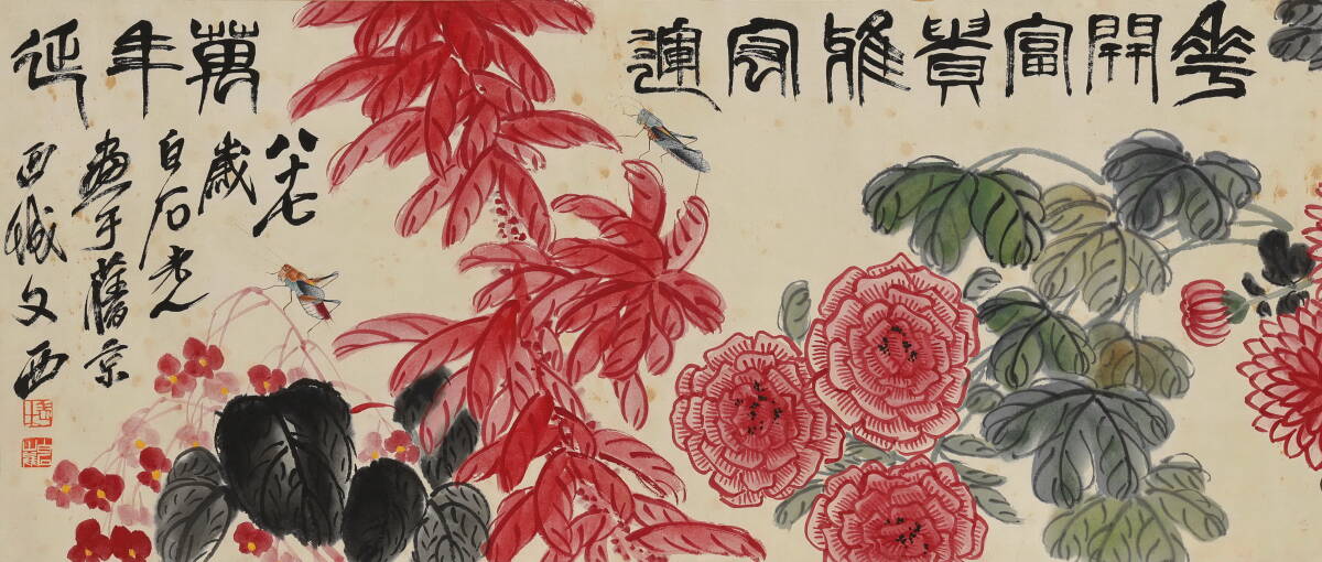 中国書画 掛け軸 中国・近現代 斉白石書「花開富貴長巻」紙本立軸 書道巻物 真筆逸品 肉筆保証 唐物 古画 LOT-N6573 | |||