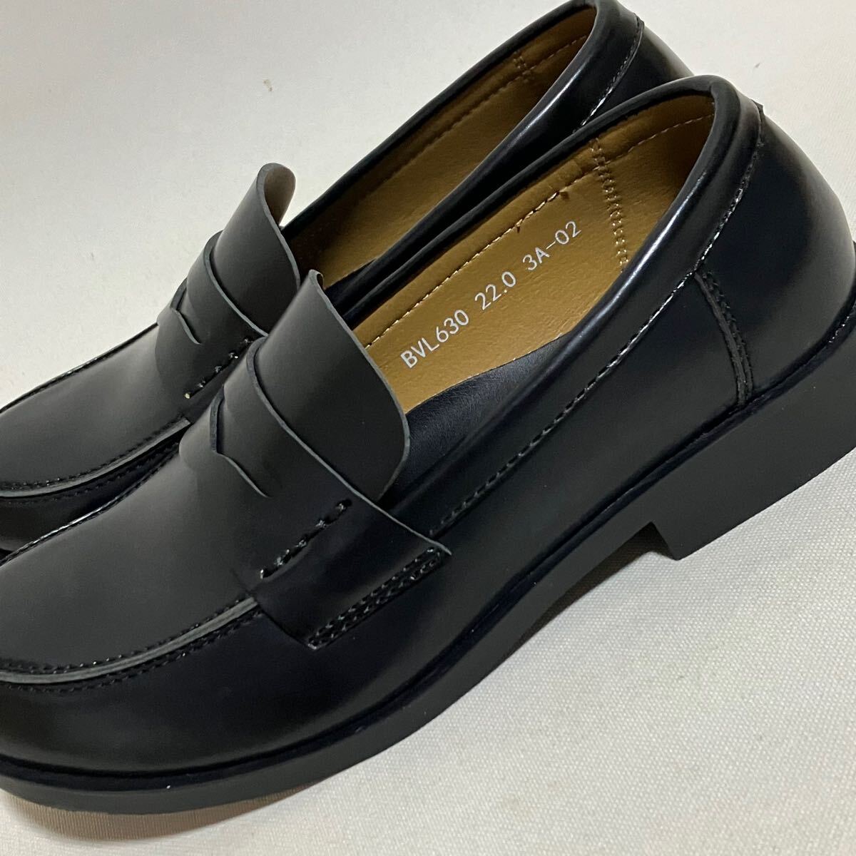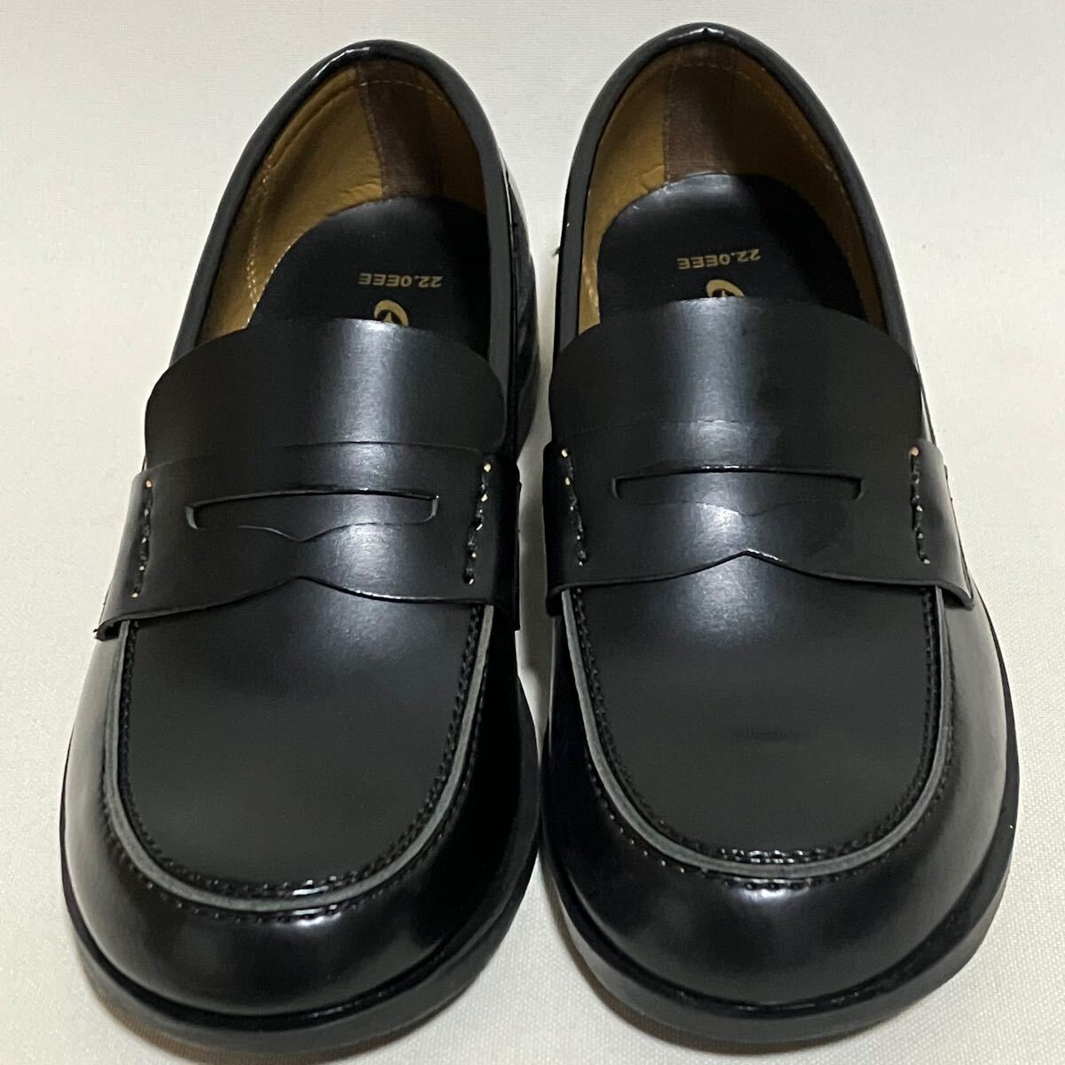 ローファー 22cm 女の子 通学 小学生 中学生 高校生 新品 黒 ブラック 22 3E 幅広 22EEE 21.5cm
