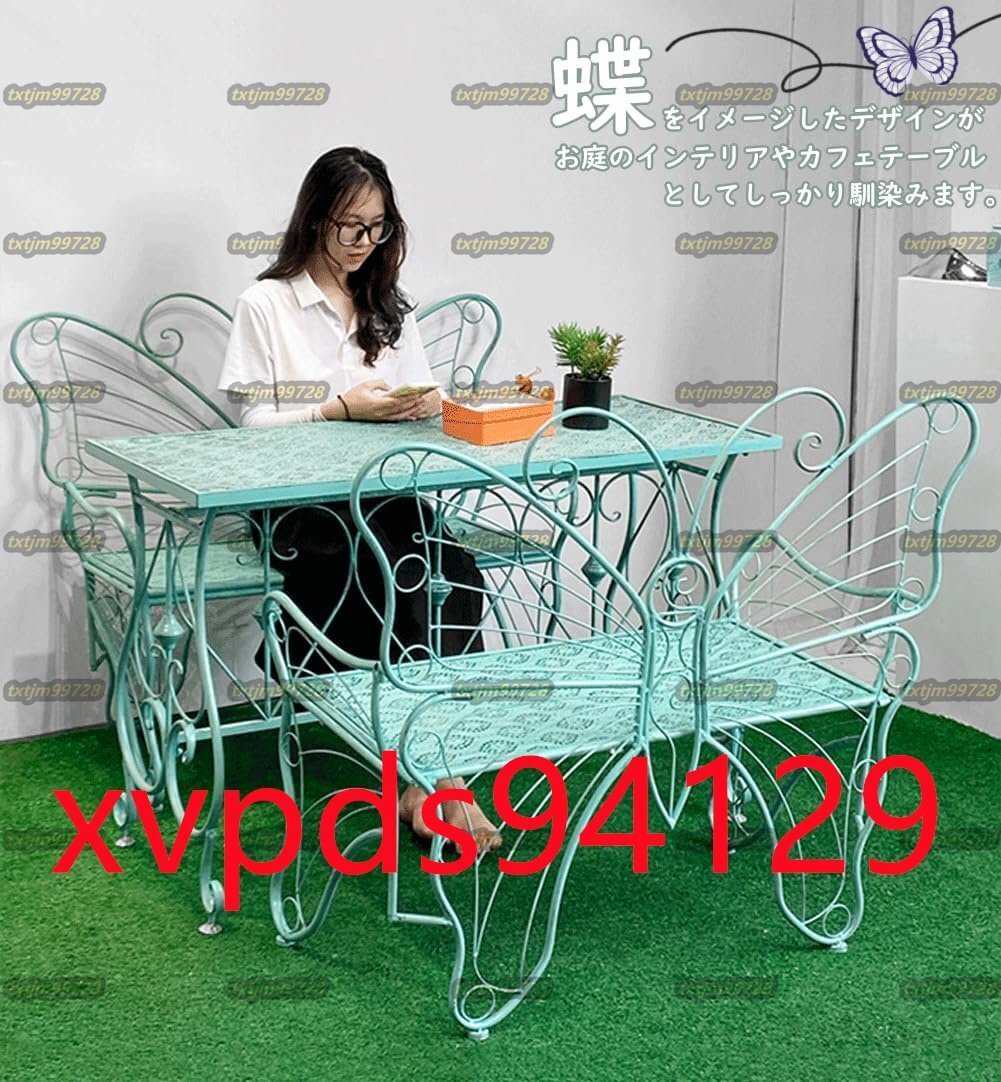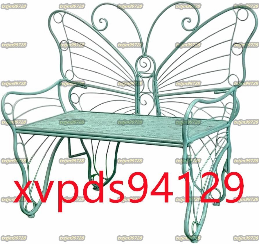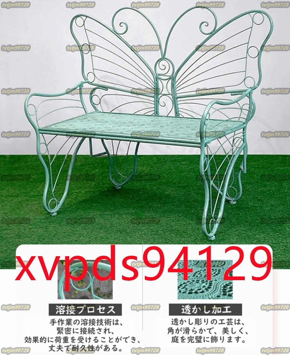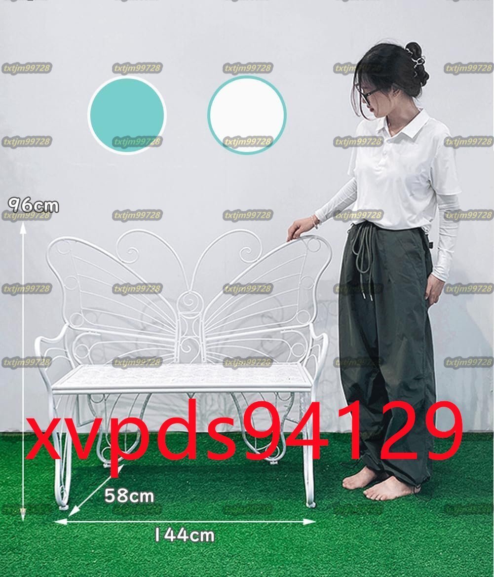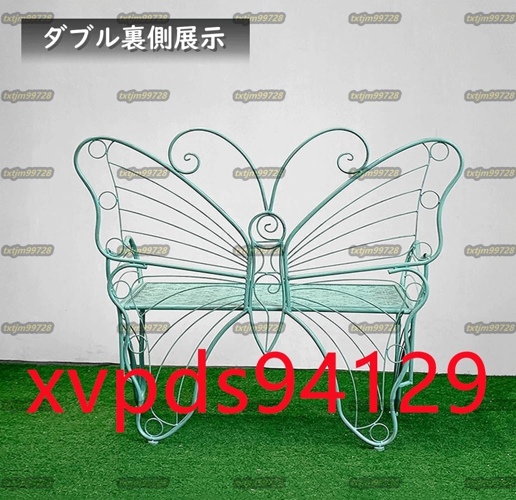 【製品仕様】:商品サイズ(約)-144×58×96cm(詳細は画像をご参照下さい)。 耐荷重:約300kg。材質:鉄。蝶をイメージしたデザインがお庭のインテリアやカフェテーブルとしてしっかり馴染みます。