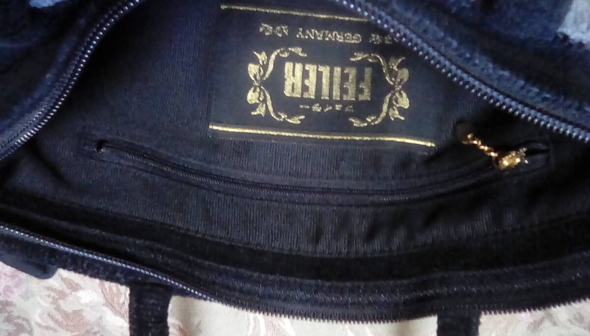 フェイラーのハンドバッグとハンカチーフのセットです。ハンドバッグ横34、縦23、底幅11、ハンカチーフ16、5の正方形です。使用頻度は、少ないですが、タオル地のため隙間に細かいゴミが付いています。