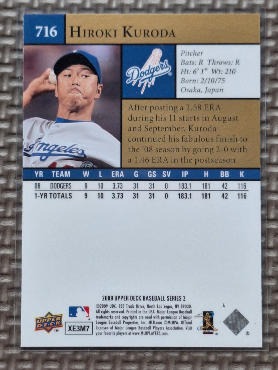 2009 Upper Deck Series 2 #716 HIROKI KURODA Los Angeles Dodgers Hiroshima Toyo Carp