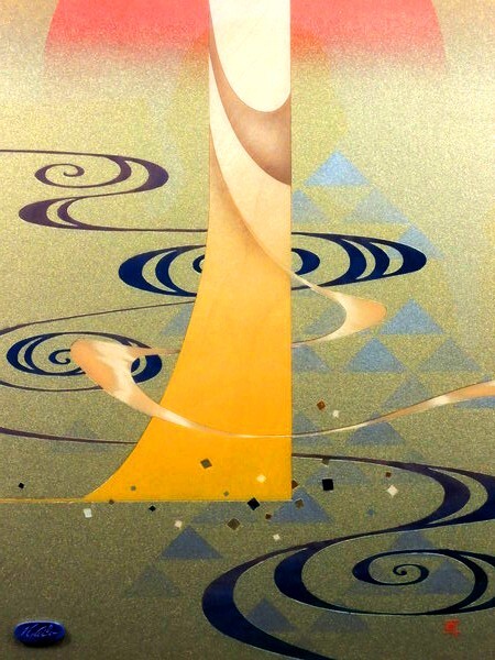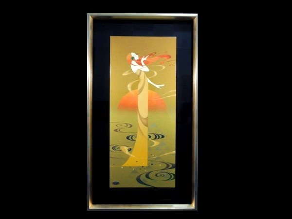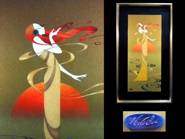 洋画家:千葉政助による象嵌・螺鈿細工・金銀砂子画作品  「大河のほとりに(イーオー)」   額装品になります。