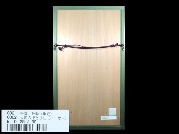 真作/千葉政助/「大河のほとりに(イーオー)」/象嵌 螺鈿細工 金銀砂子画/変形15号/額装品/ 29/30 /保証付/箱付/金箔/銀箔/作家物/美術品