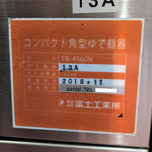 【業界最長1年保証】コンパクト角型ゆで麺器 富士工業所 FB-4560N 都市ガス 業務用 中古/送料別途見積