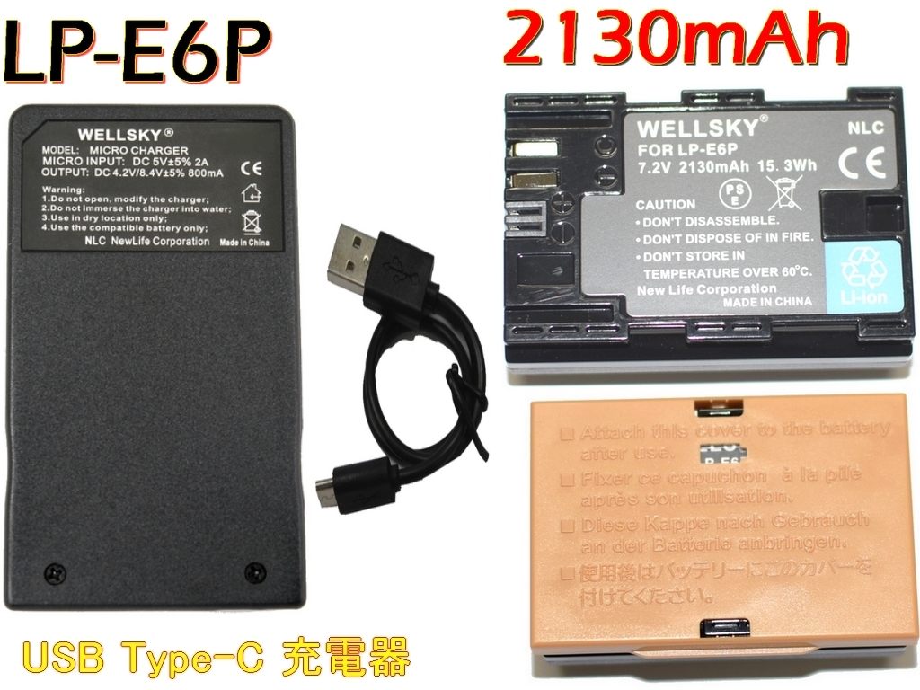 LP-E6P [新品] LP-E6NH LP-E6N 互換バッテリー 2個 + LC-E6N LC-E6 Type-C USB 急速互換充電器 バッテリーチャージャー1個 EOS R5 MarkII