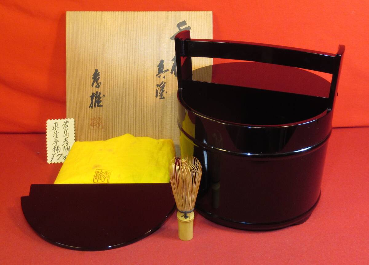 茶道具『露地道具 木製真塗手桶(合せ蓋付)若島孝雄作 共箱・共布(価格7万円)』水指 茶道教室 茶事 表千家 裏千家十職 七事式 茶懐石 初釜