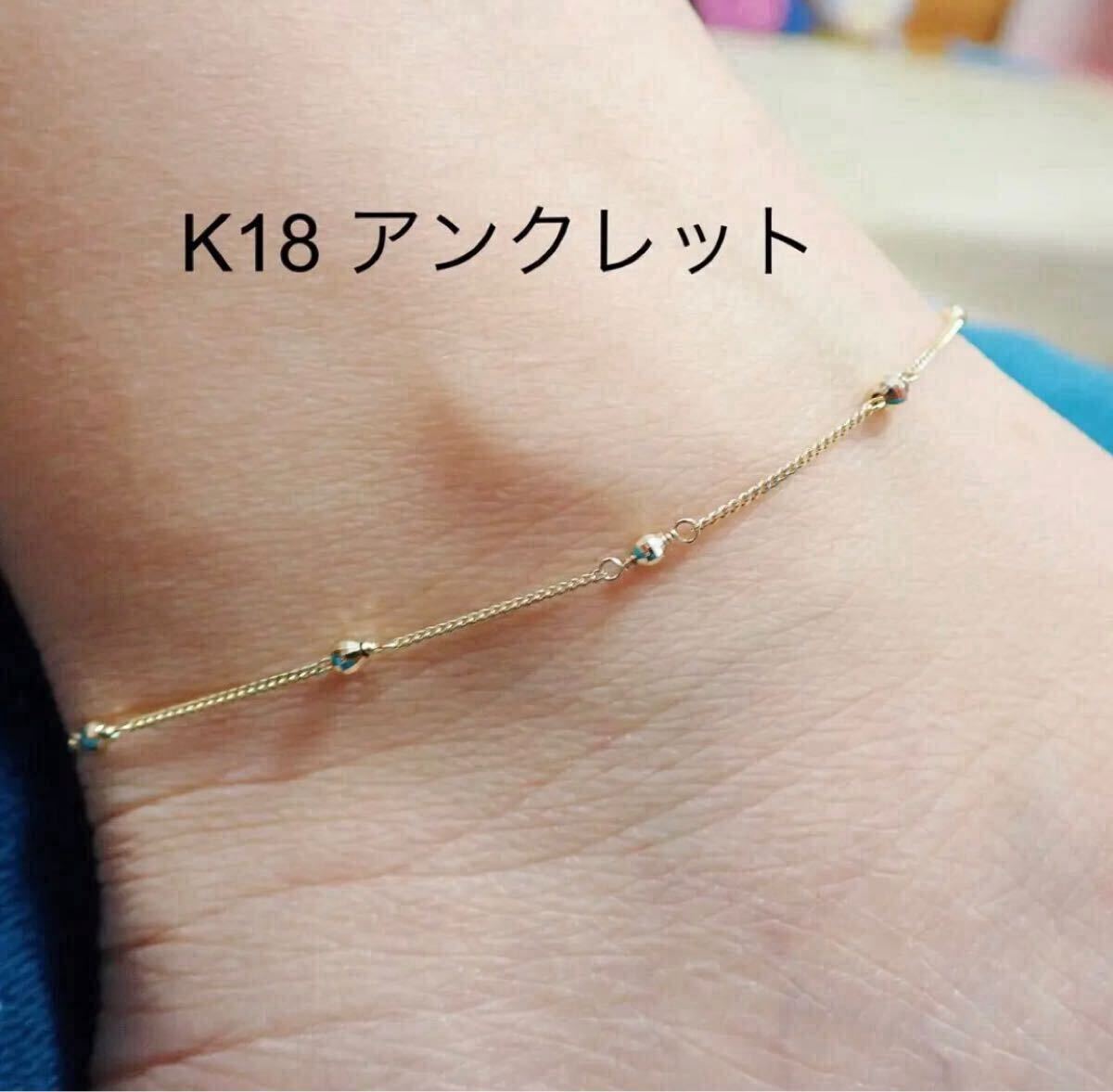 k18 19cm 喜平1mmブレスレット ステーションブレスレット アンクレット アジャスター付