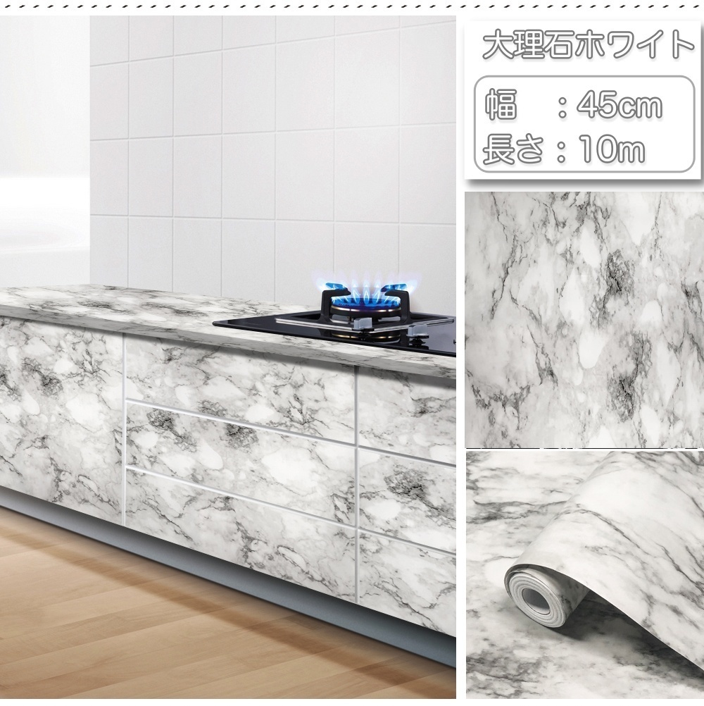 【破格出品!!】大理石シール インテリア 壁紙 模様替え はがせる 45cm×10m 防水 防汚 防カビ 耐熱 のり付き ホワイト 30本セット