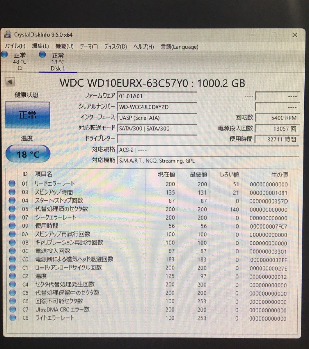 ★ハードディスクはCrystalDiskInfoにて正常に動作することを確認しています。