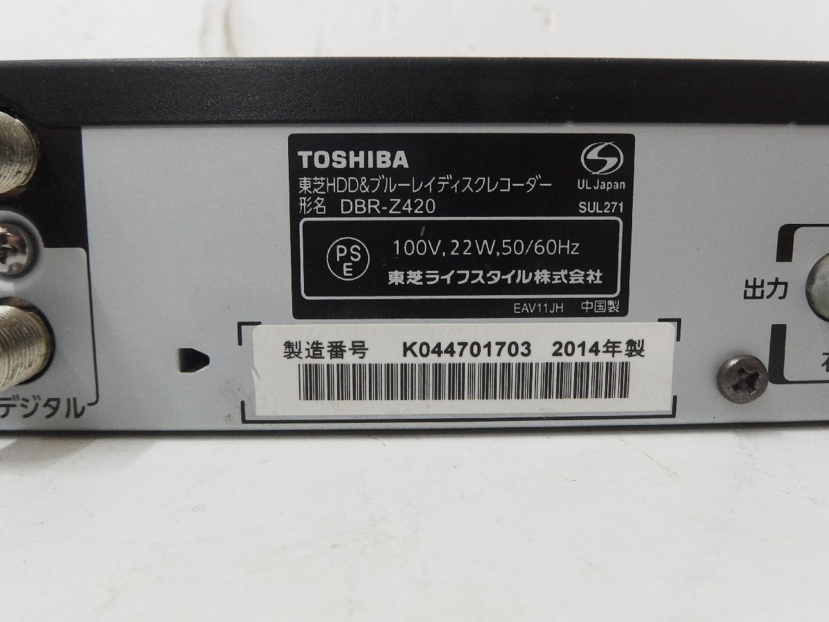 10▲/Zク3798 保証有 ☆東芝 REGZA HDD/BDレコーダー DBR-Z420 2014年製 中古