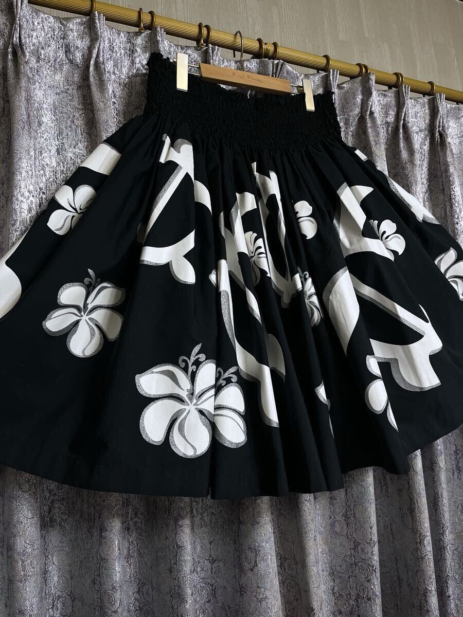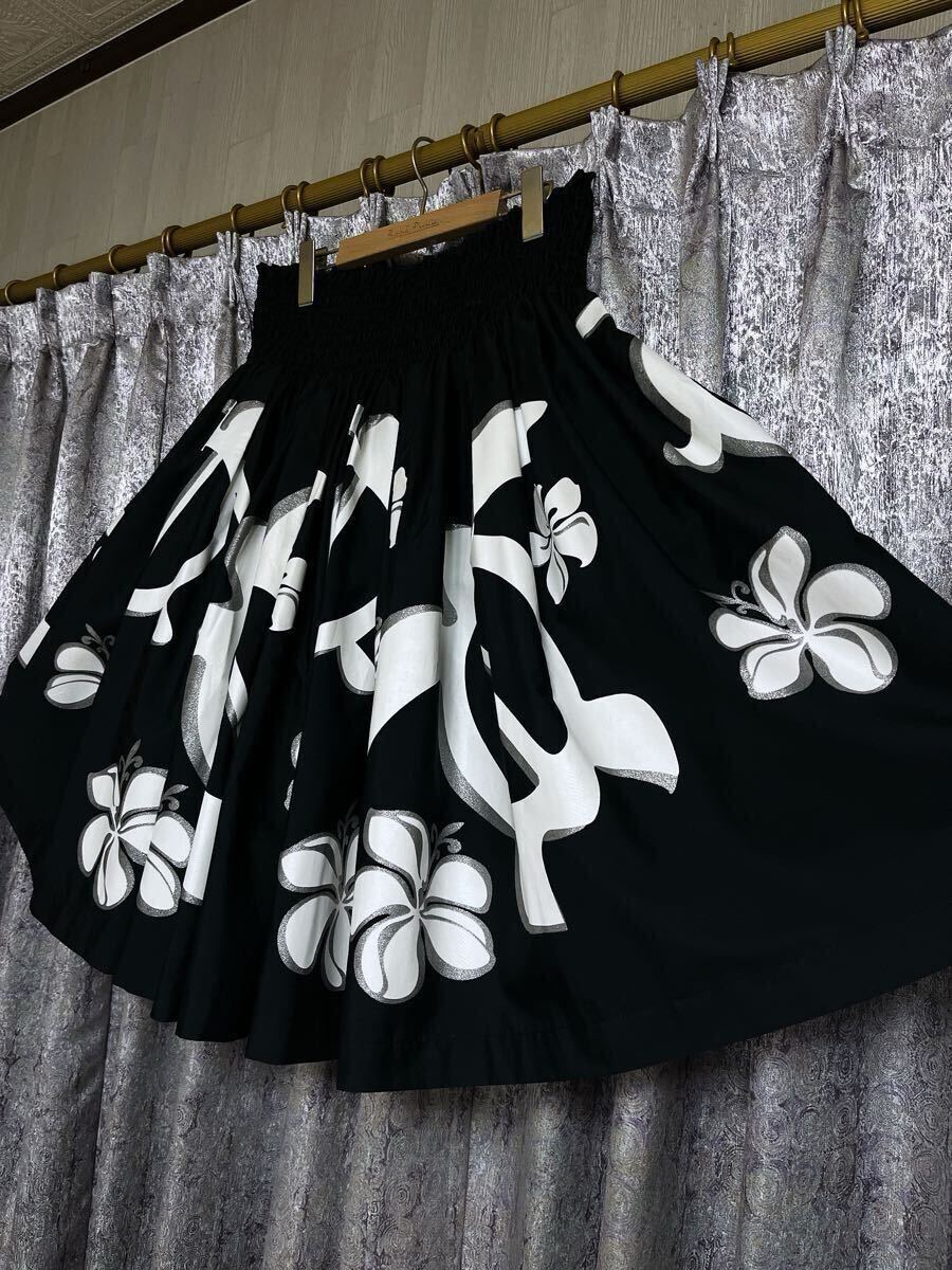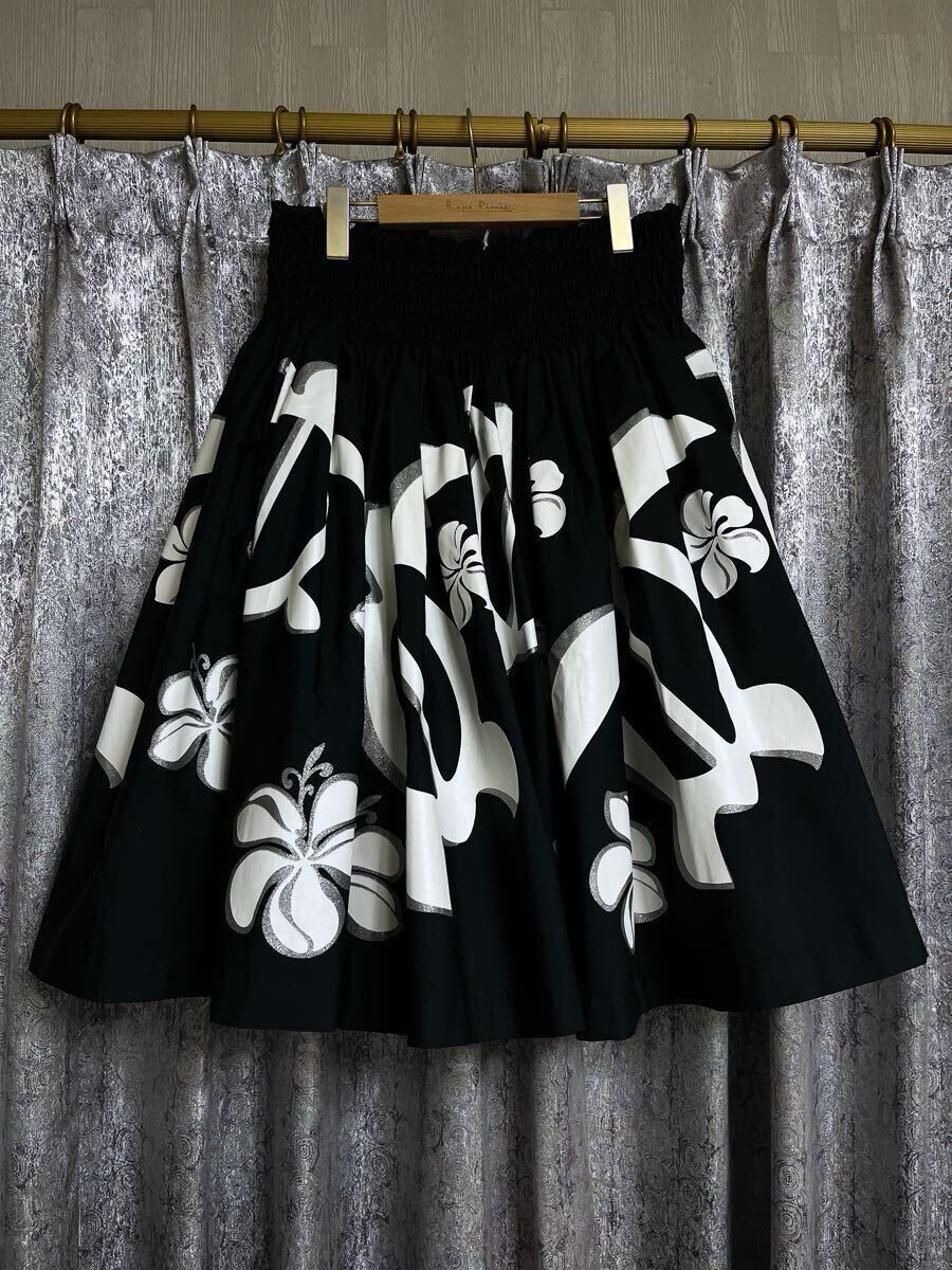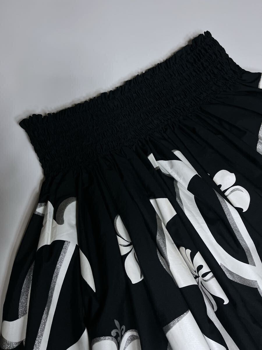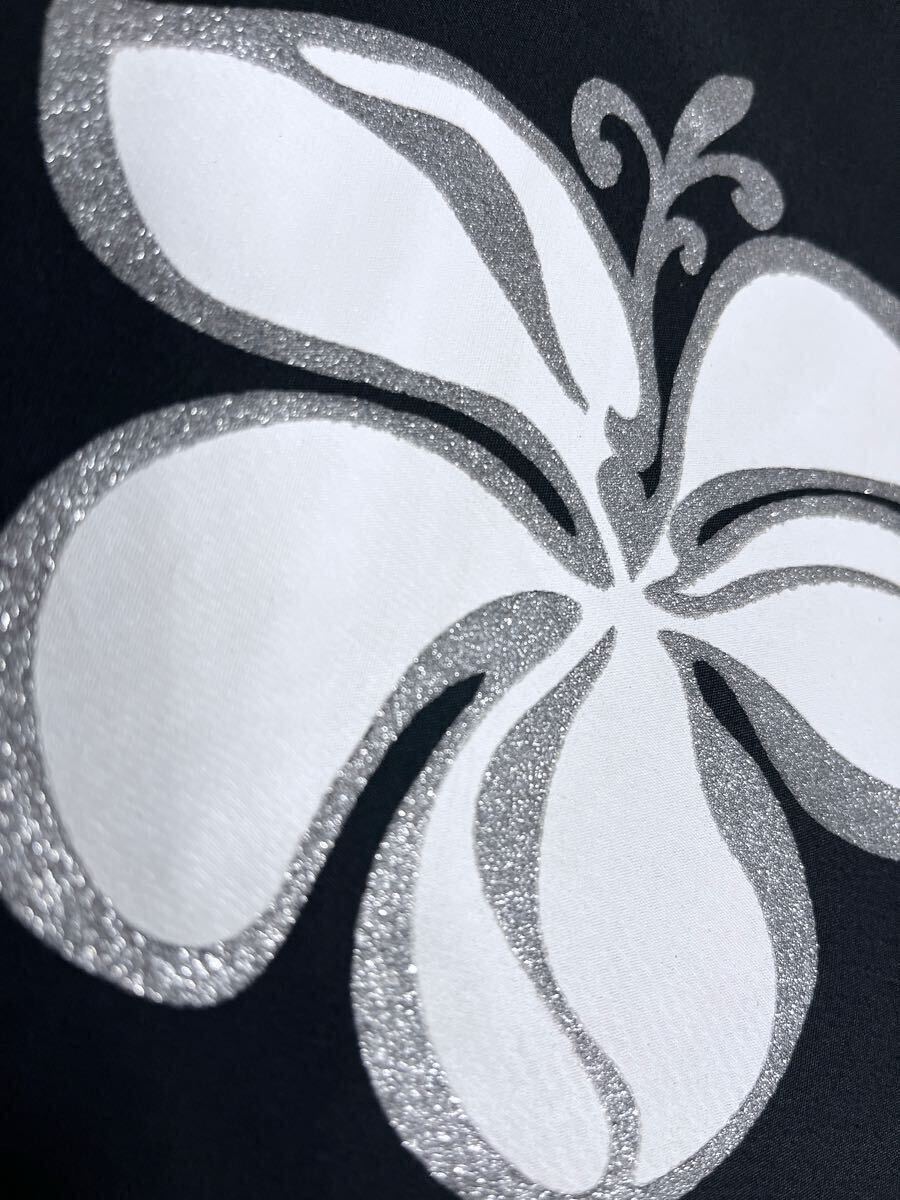 上品で艶っぽいブラックにホワイトとシルバーラメでホヌやプルメリアがプリントされています。