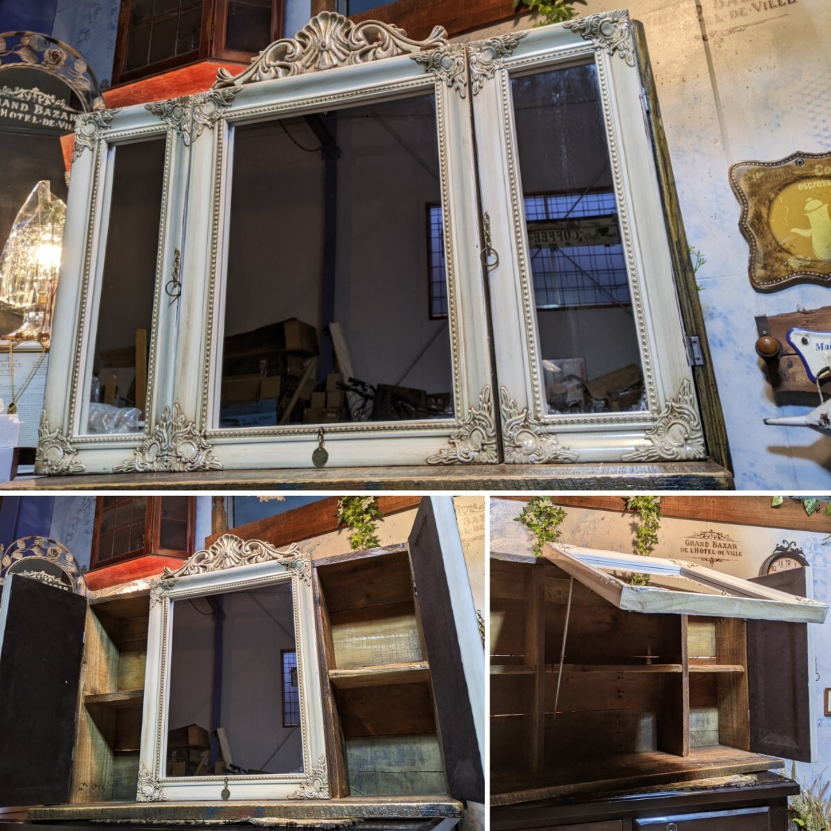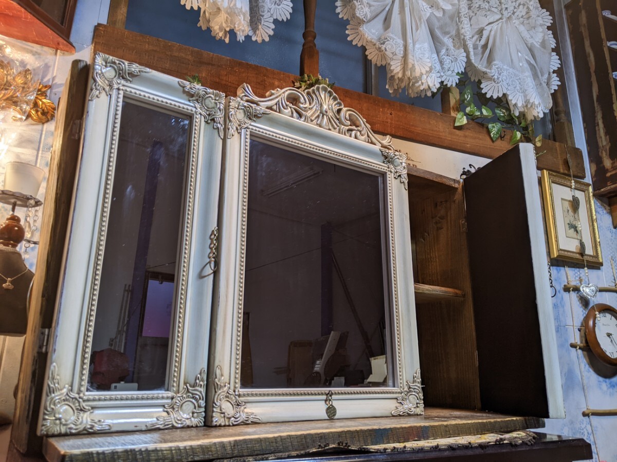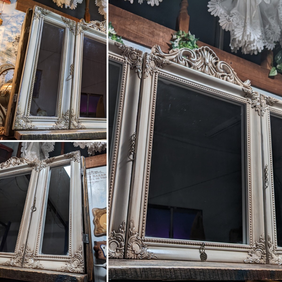 ※鏡は、海外製の為、両側に1箇所の極小さなキズが御座いますが、縁周りにアンティークな風合いに汚れ塗装を入れて降ります為、余り気にならないかと思います。