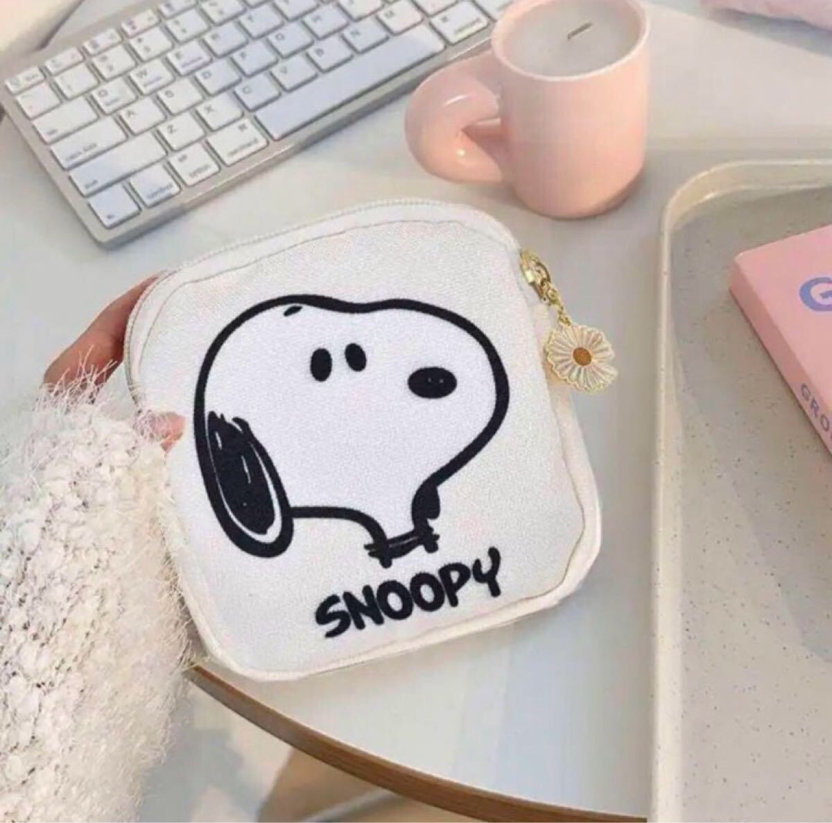 こちらはスヌーピーのマルチポーチです。 新品未使用品で、コインケースとしてもお使いいただけます。 ホワイト系の色合いが可愛らしいアイテムです。