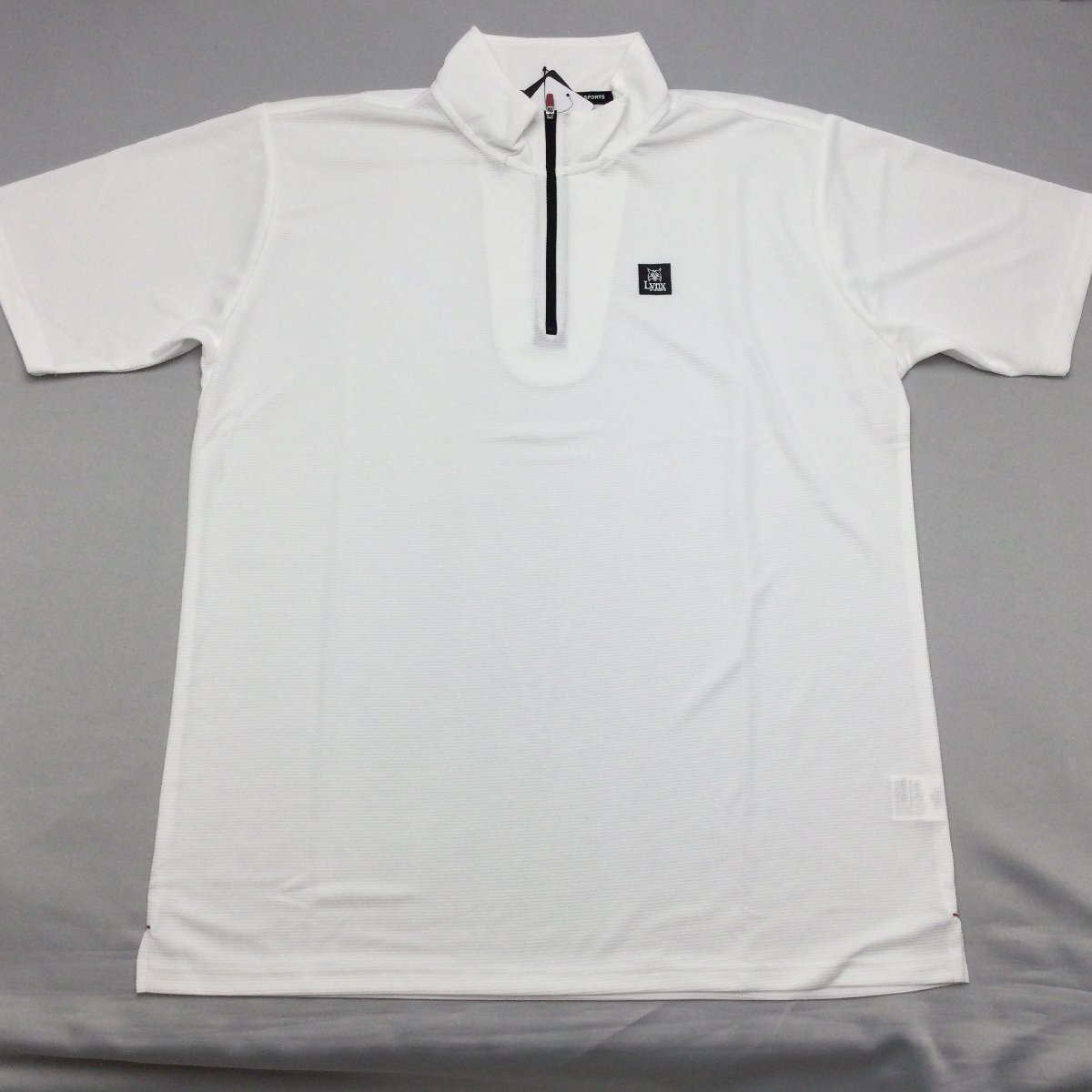 半袖シャツ:脱ぎ着が楽なハーフジップタイプ。 両裾サイドにスリット入り。左胸にロゴプリントあり。