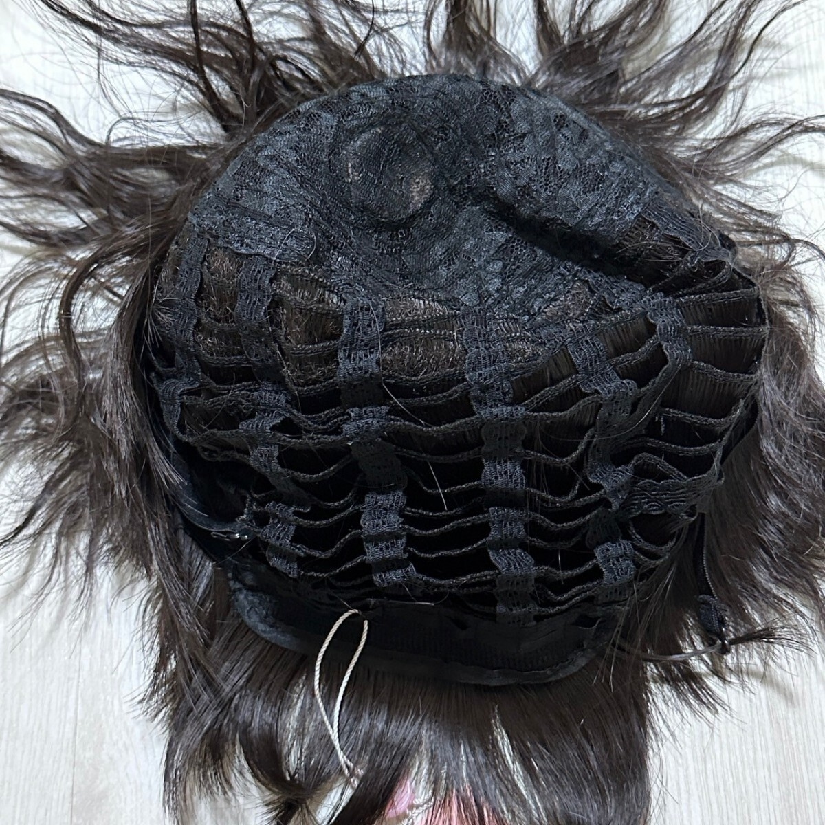 耐熱160℃以内でドライヤー、アイロンなどで好みの髪型に整えることができます。髪はふわふわに仕上げており、分け目アレンジも自由自在です。 頭皮素材は人工頭皮に高級ネットを採用しており、抜け毛は少なくつむじはとても自然です。