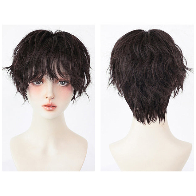 【新品】ショート ウェーブ ブラックブラウン ウイッグ 耐熱 コスプレ かつら