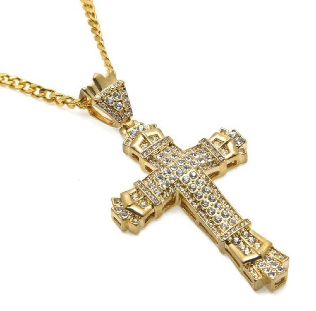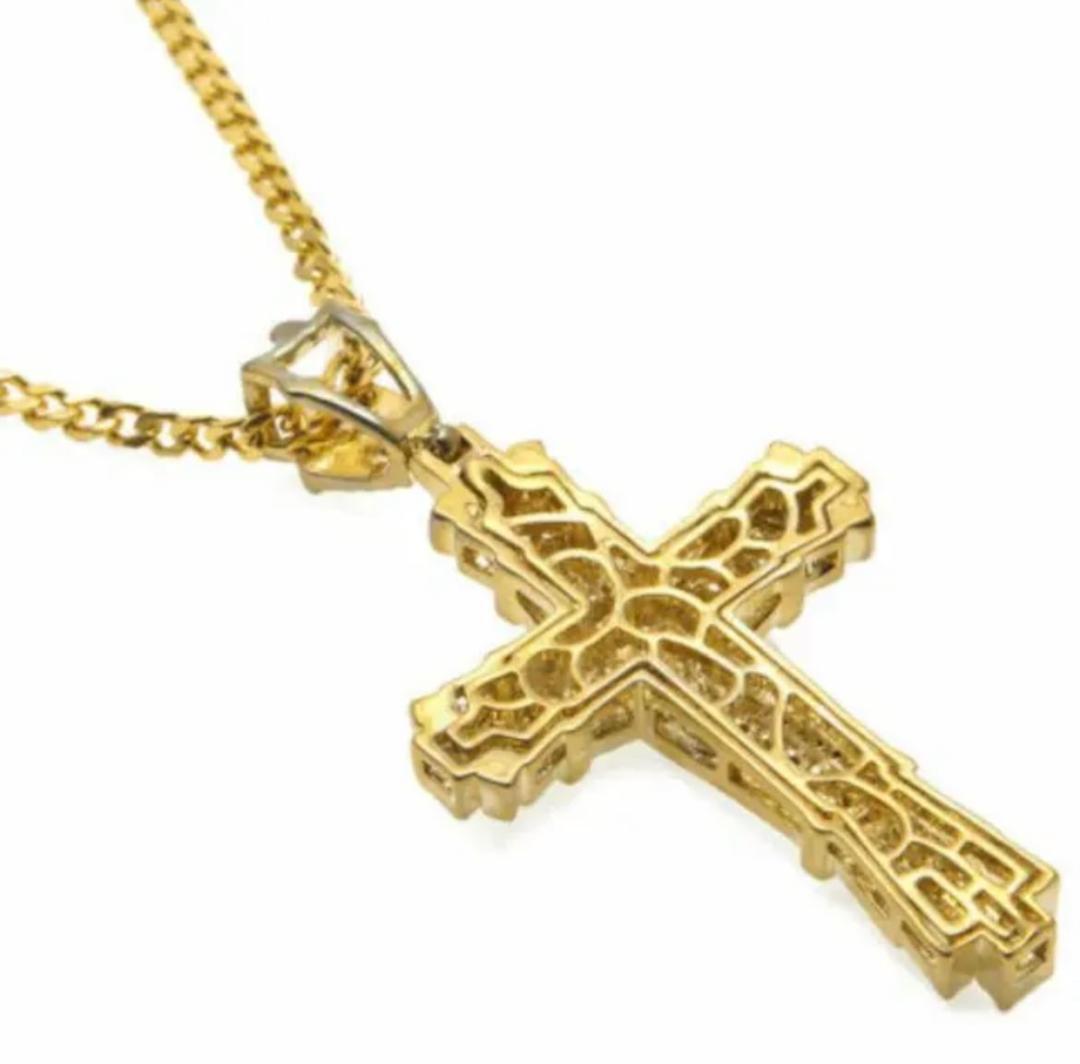 ジルコニアクロスネックレス ゴールド 十字架 無骨