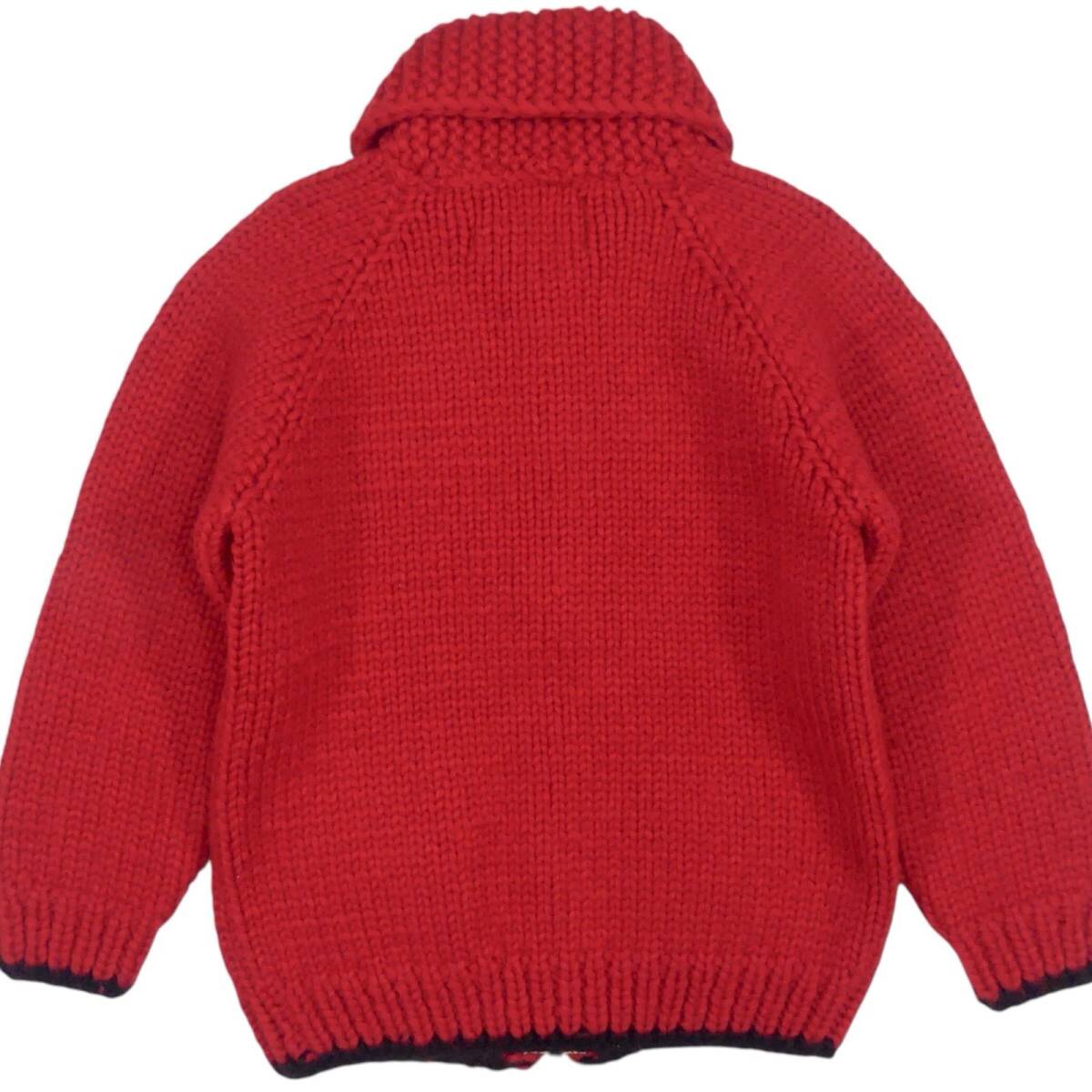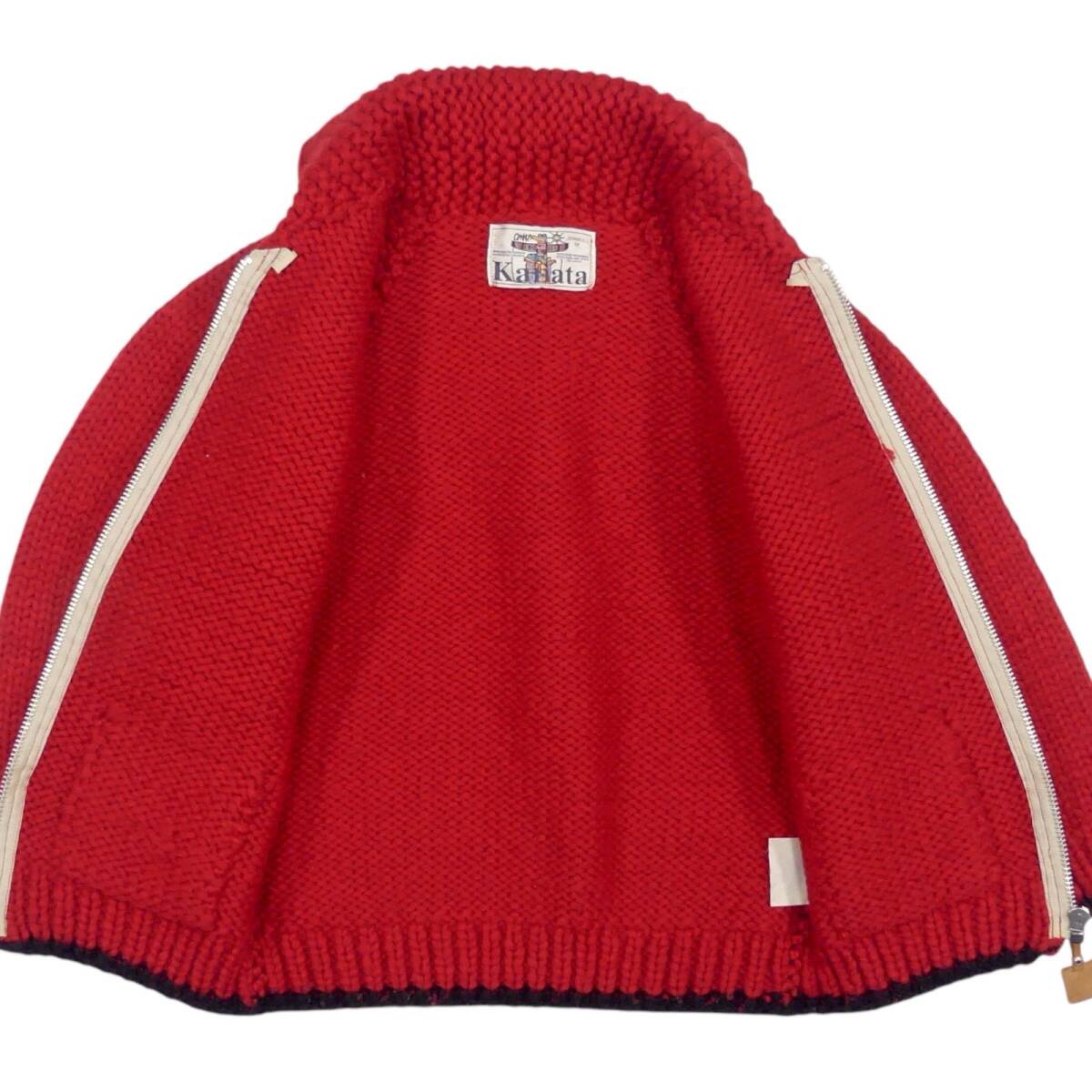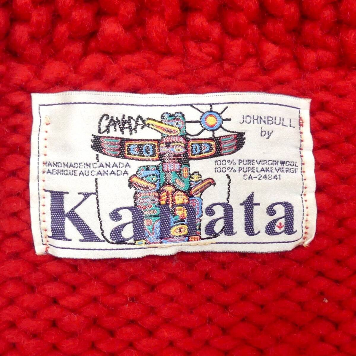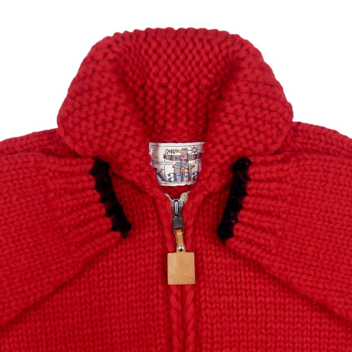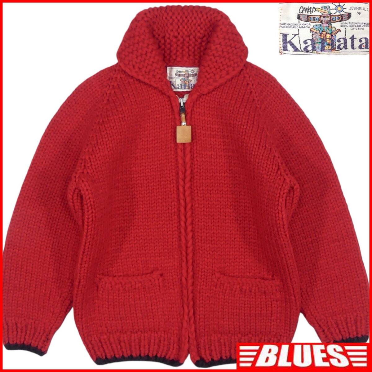 即決★カナダ製 KANATA★メンズ L位 カウチンセーター カナタ 赤 ウール ハンドニット セーター カーディガン 無地 ジップアップ