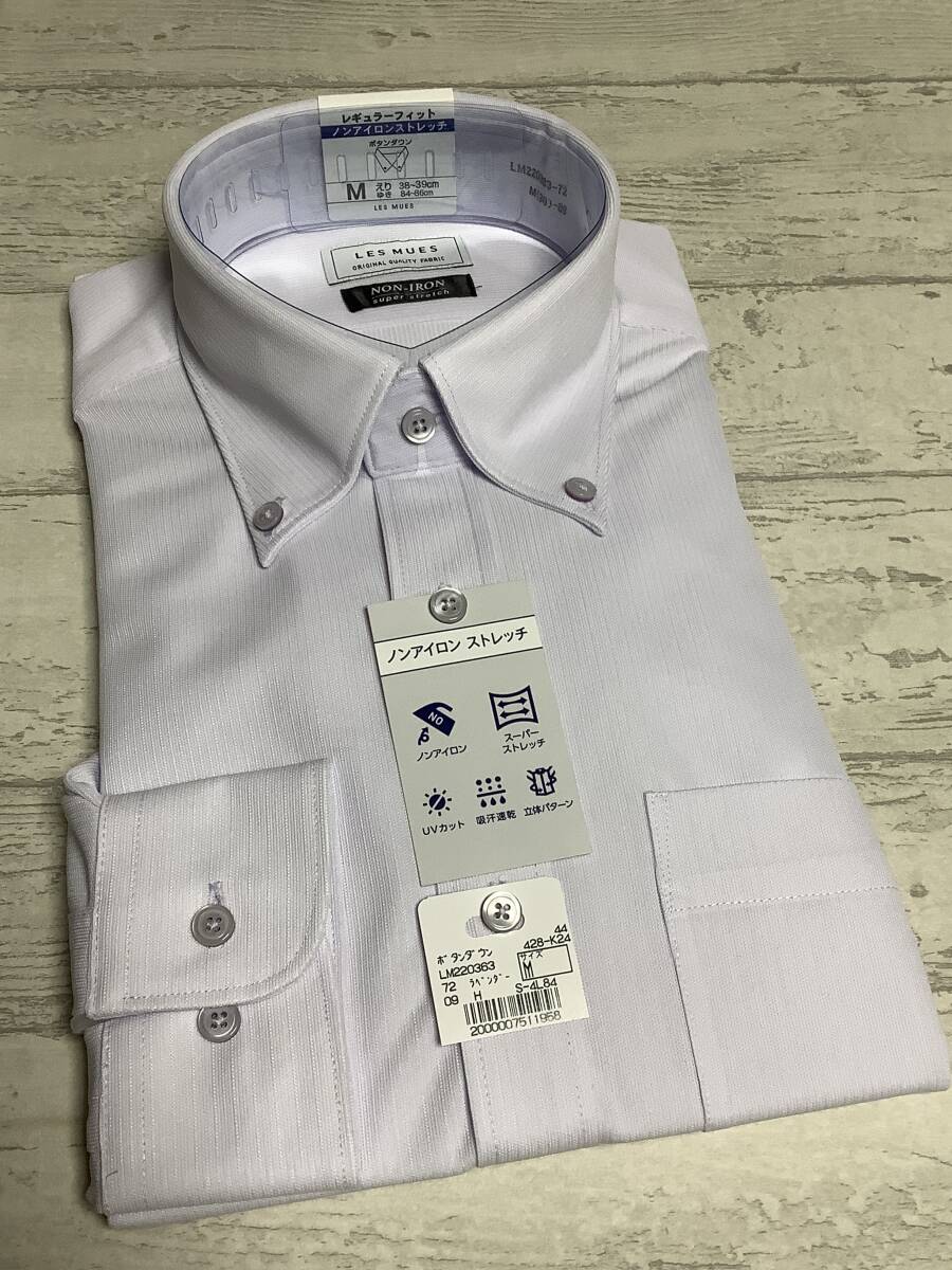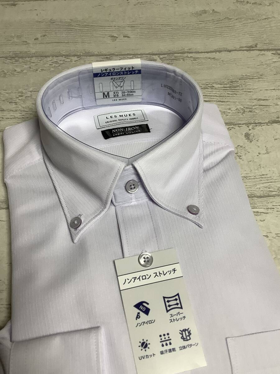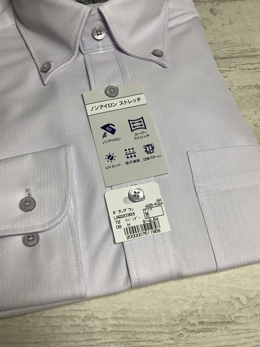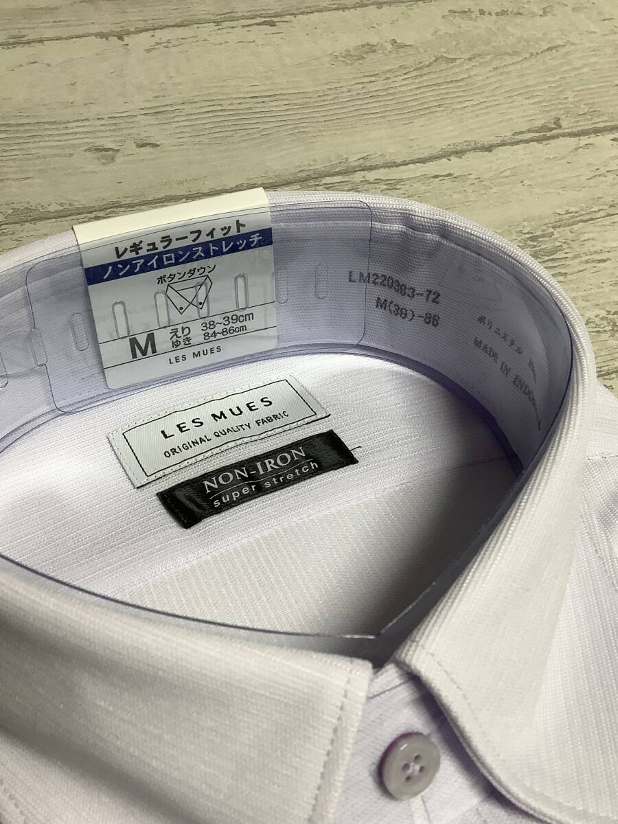 39-86 新品未使用 Mサイズ ストレッチ ボタンダウンカッターシャツ ノンアイロン ラベンダーパープル色 ビジネスワイシャツシャツ