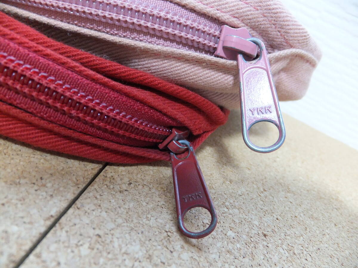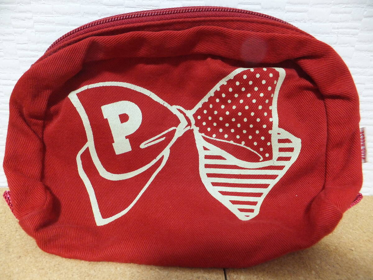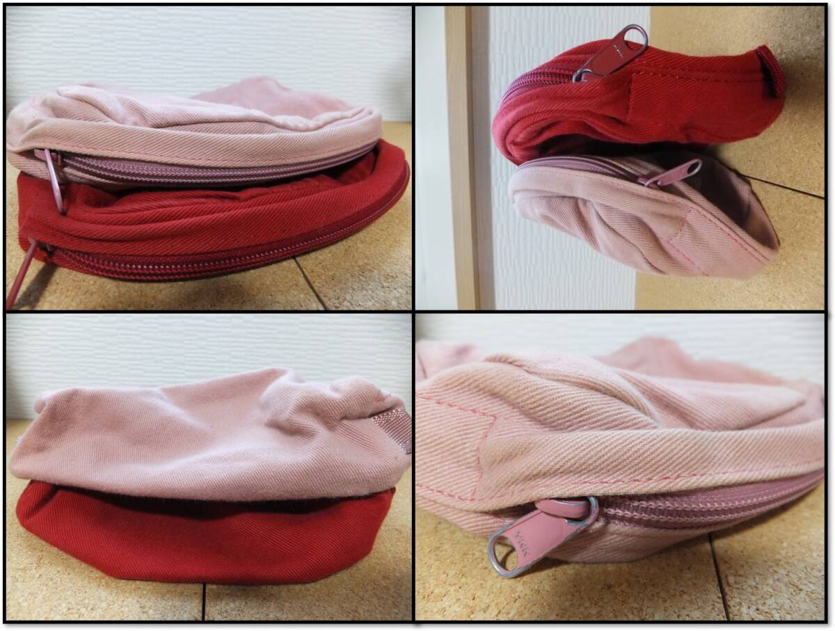 中古 PINK HOUSE ピンクハウス ポーチ 小物入れ 2点セット ピンク レッド 赤系 チャック式 レトロ リボン柄 ケース 色違い ④