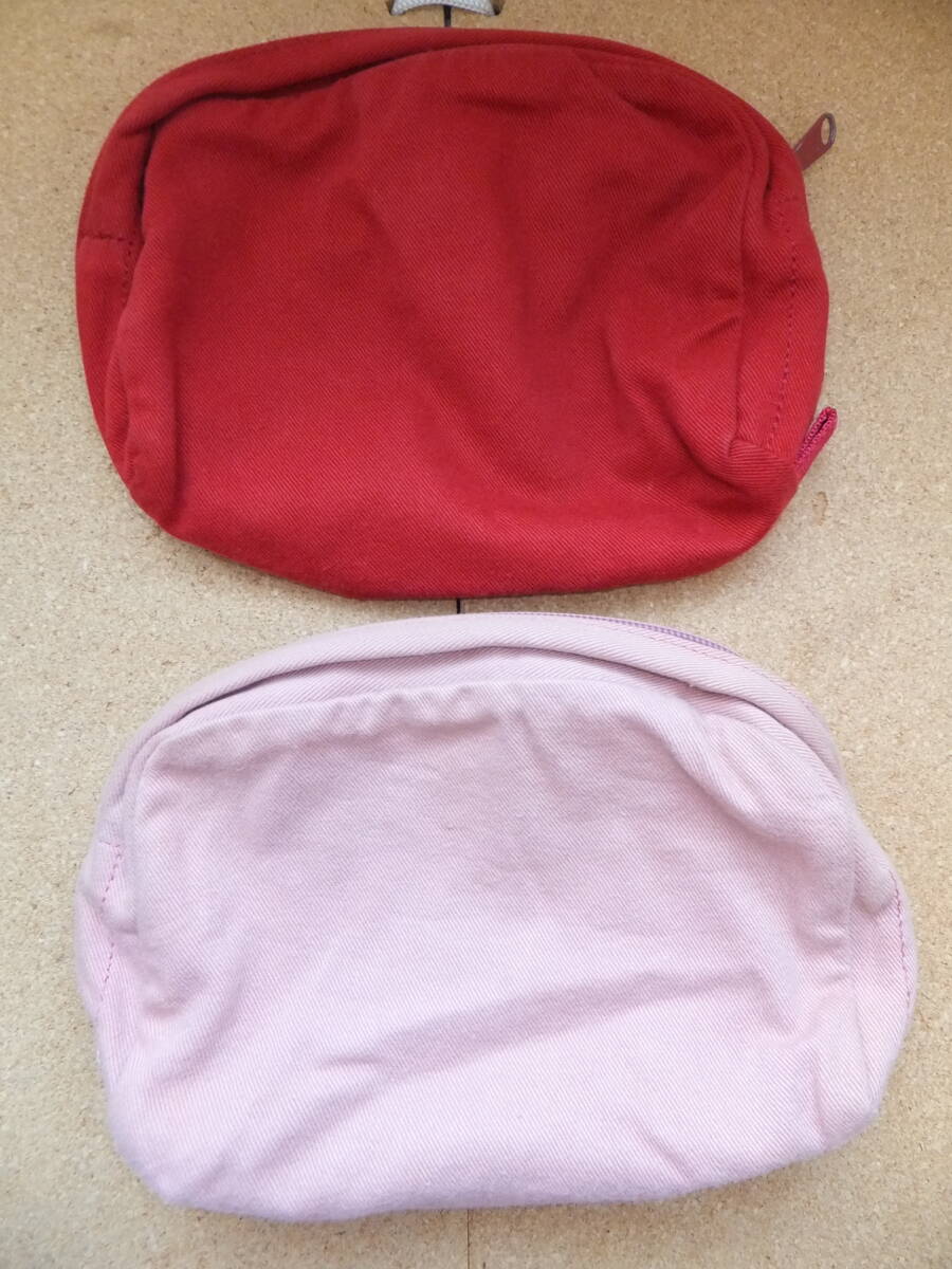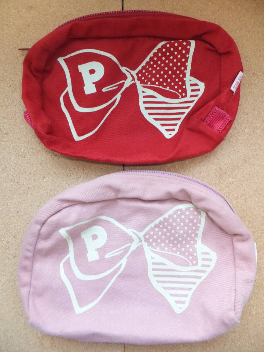 値下げ! 中古 PINK HOUSE ピンクハウス ポーチ 小物入れ 2点セット ピンク レッド 赤系 チャック式 レトロ リボン柄 ケース 色違い