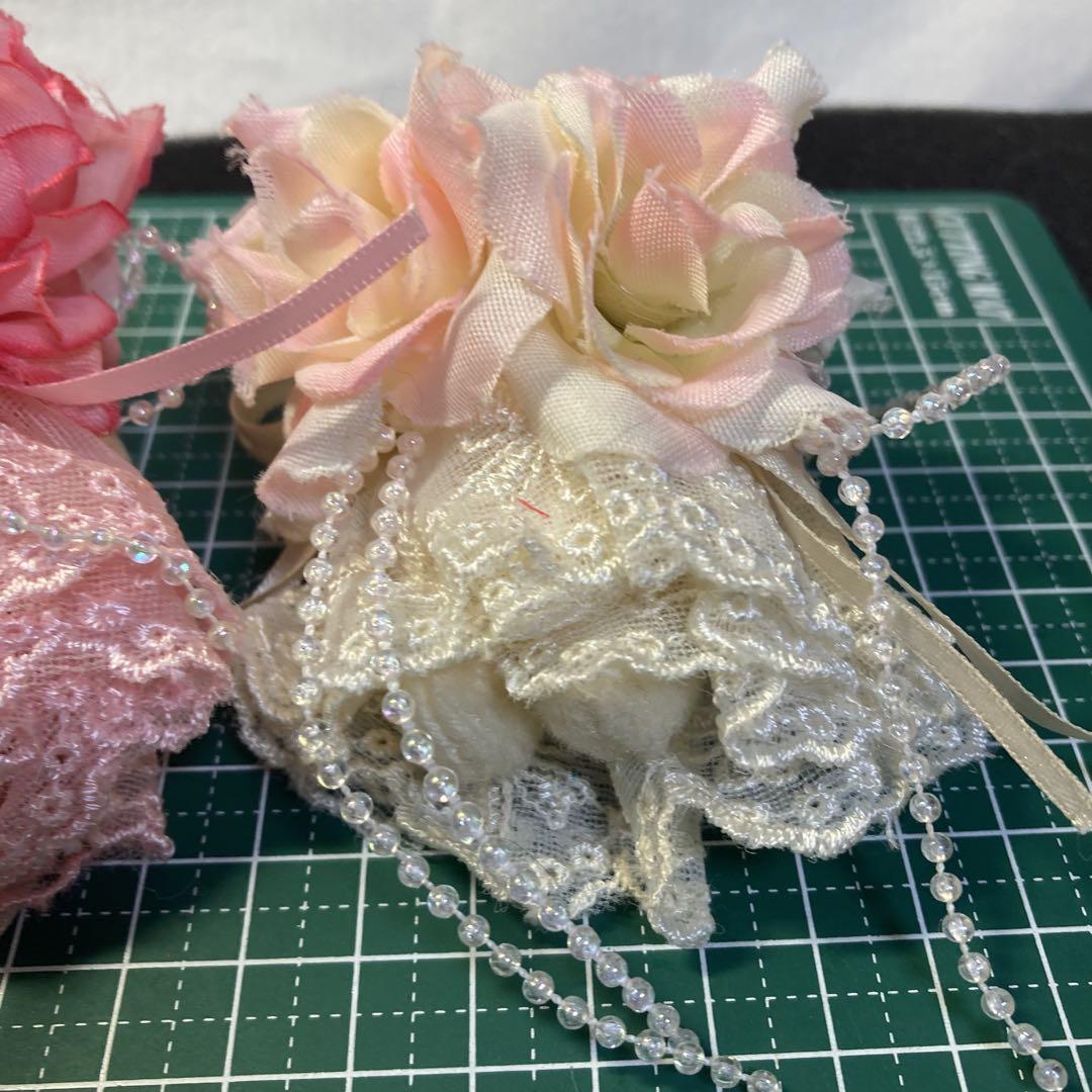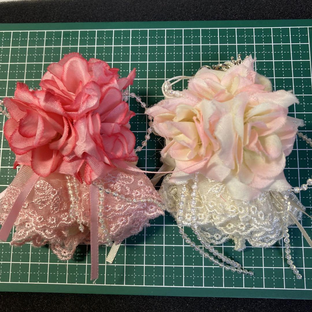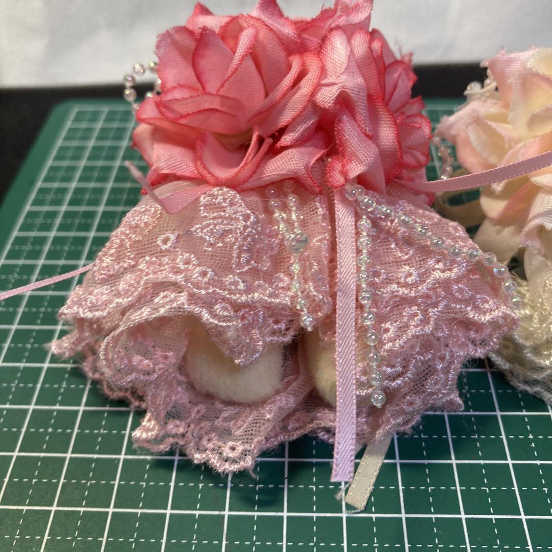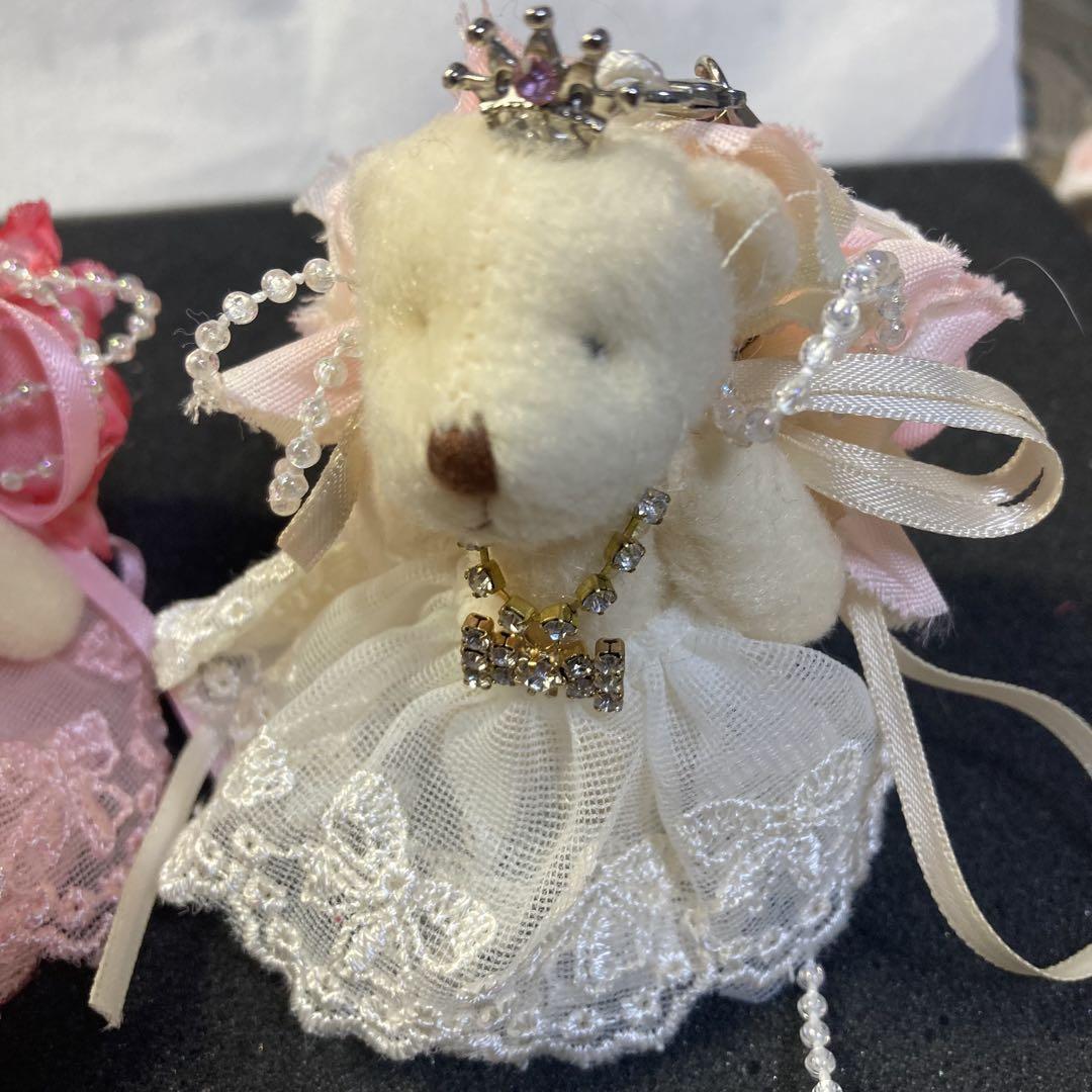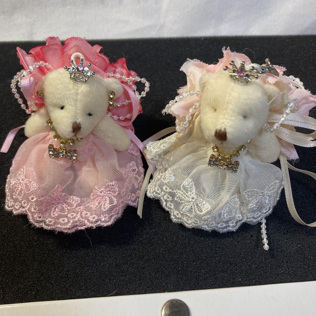 ピンクとホワイトのドレスを着た可愛いベアのセット。フラワー