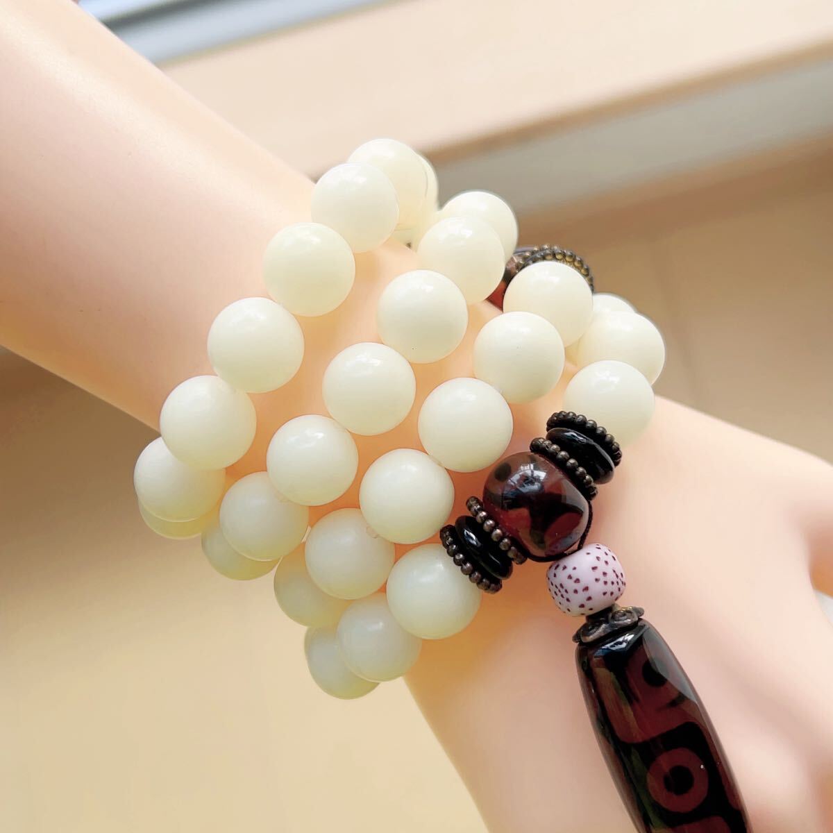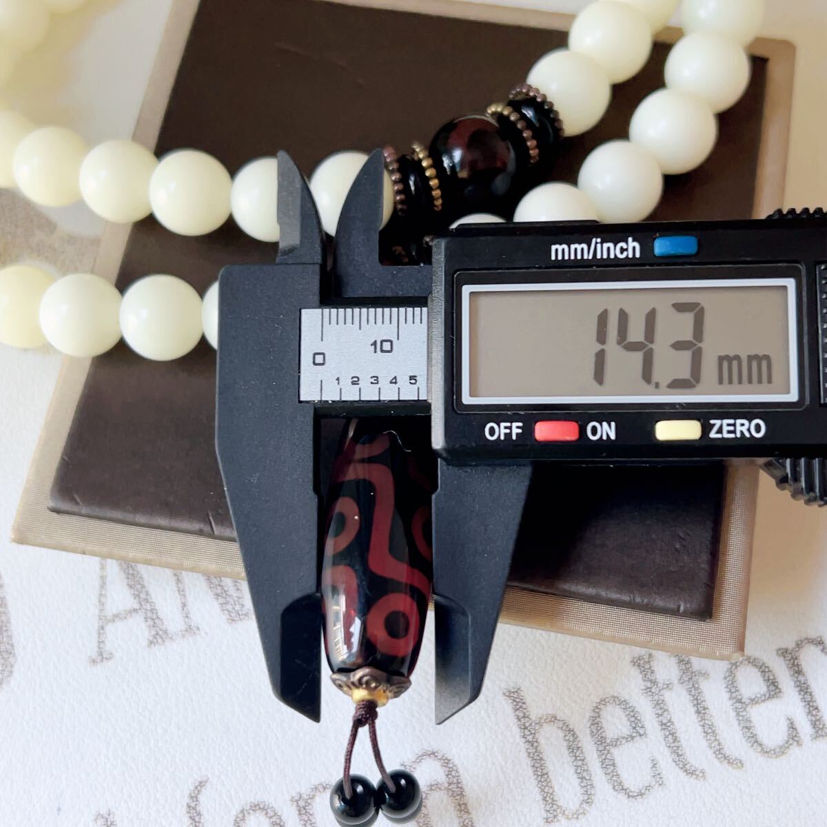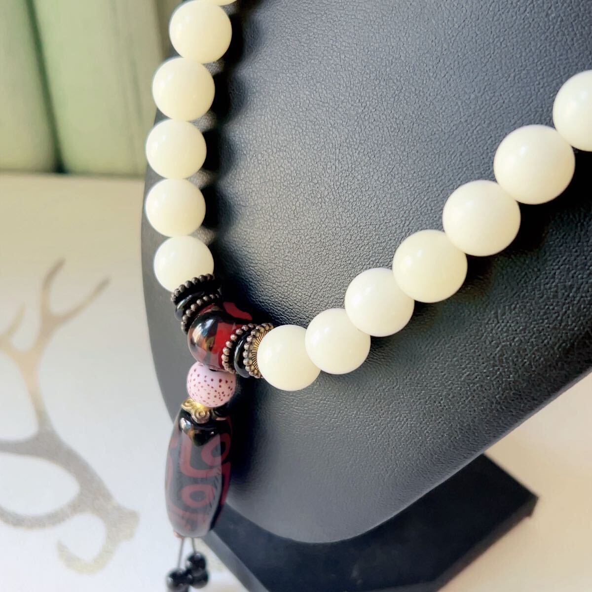 ◇菩提樹の根◇白玉菩提+三目天珠(瑪瑙)+九目天珠(瑪瑙)◇ネックレス ペンダント◇数珠◇念珠◇巾着袋つき◇プレゼントにも027P1311