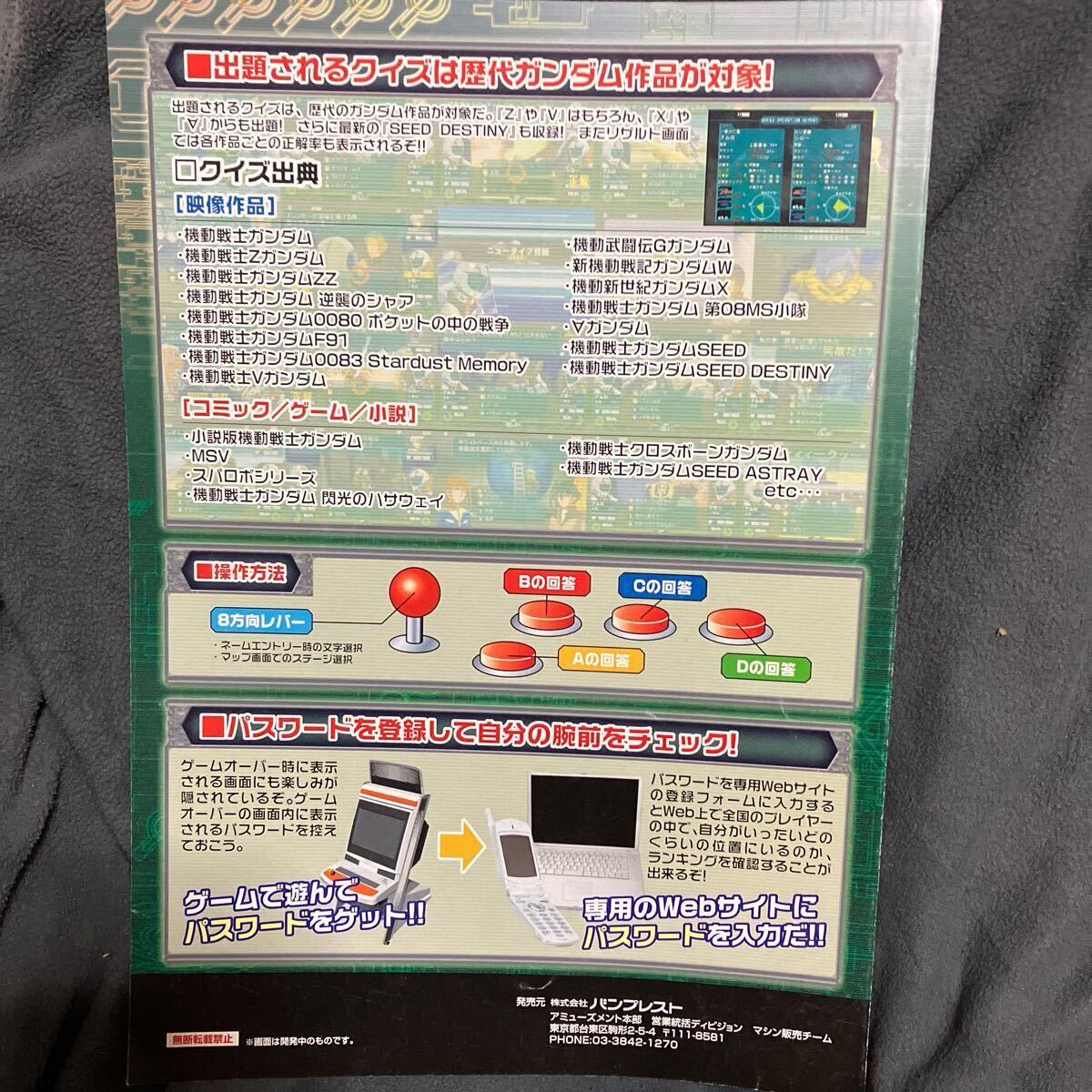 機動戦士ガンダム quiz 問 戦士 バンプレスト BANPRESTO アーケード チラシ カタログ フライヤー パンフレット 販促 ゲーム