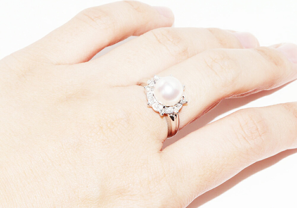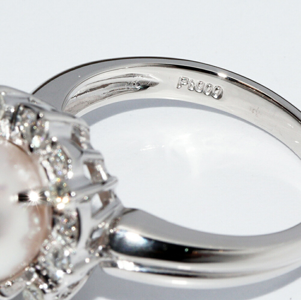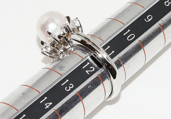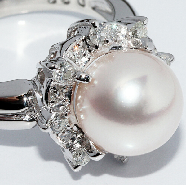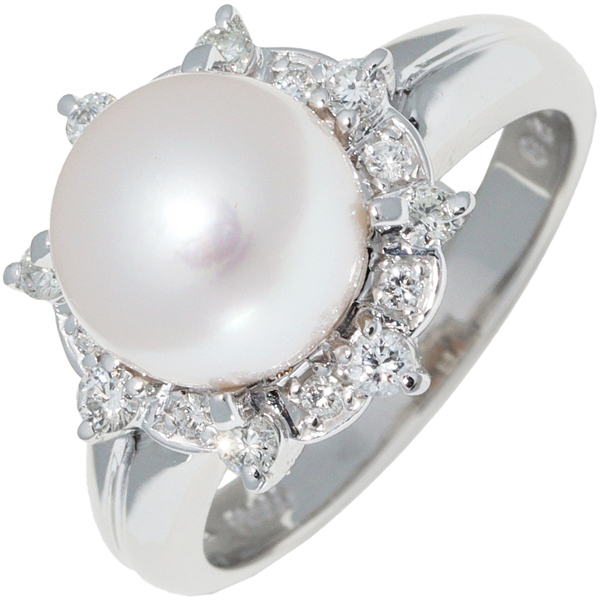 指輪 Pt900 パール(真珠)9.0ミリ ダイヤ0.28ct