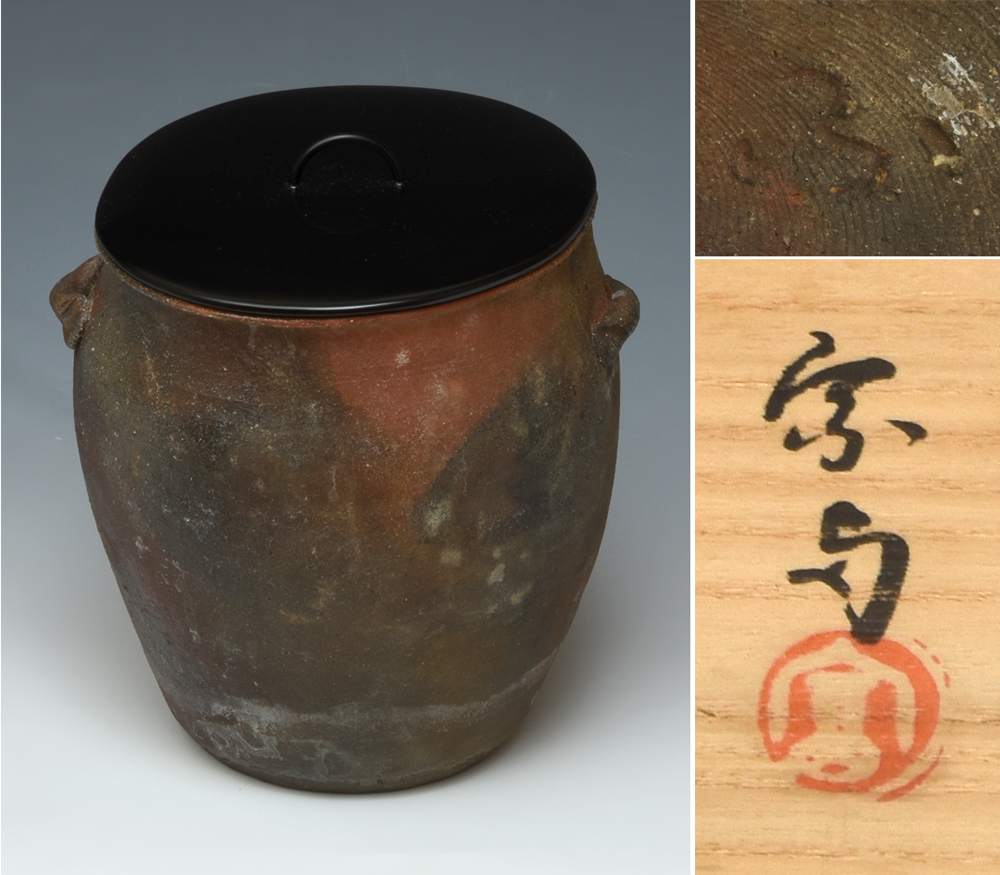 鶴巻宗富(造)南蛮焼〆種壺水指 共箱 茶道具 現代工芸 陶磁器 誂え蓋 |