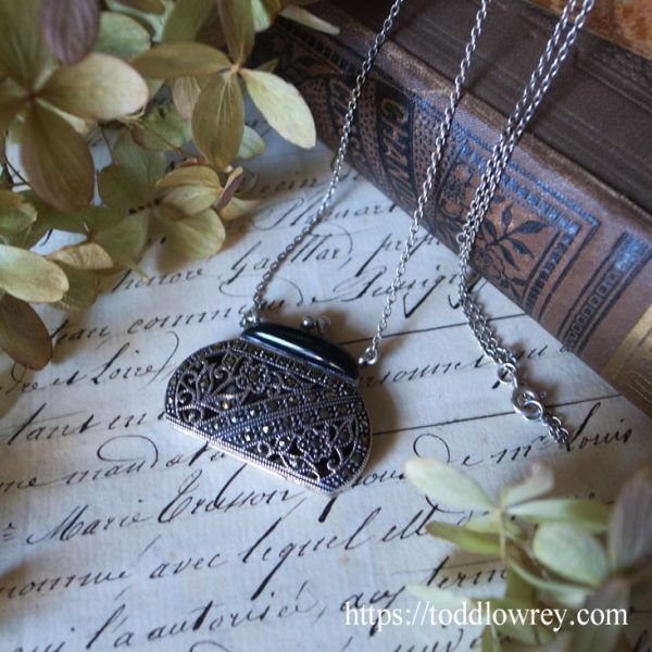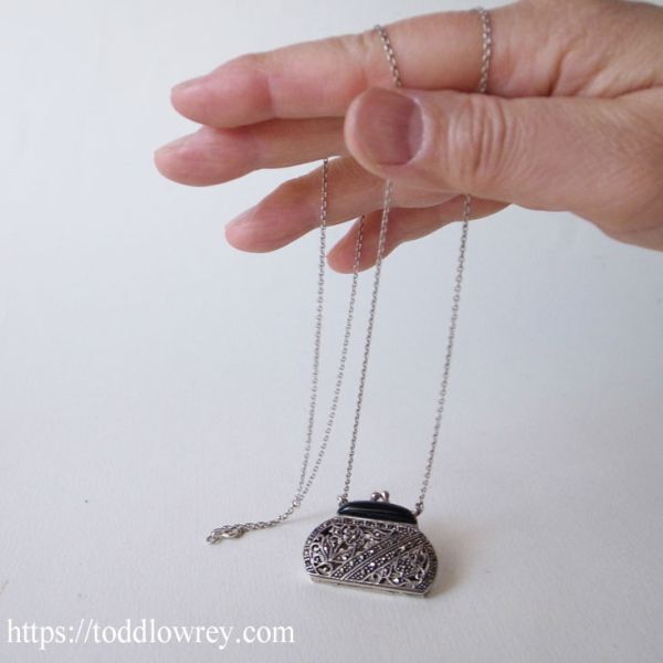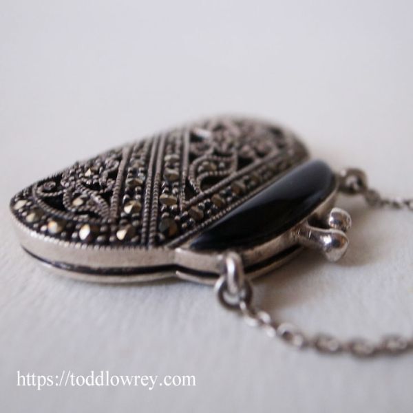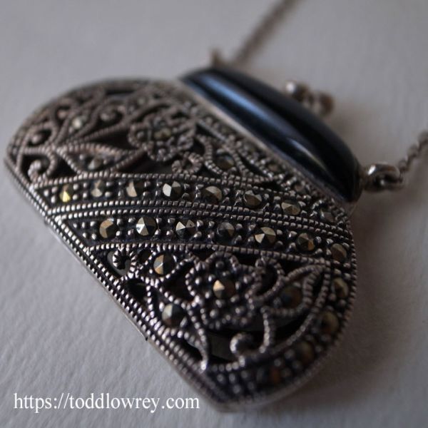 ◆Vintage Silver & Onyx Pendant Bag Shape◆