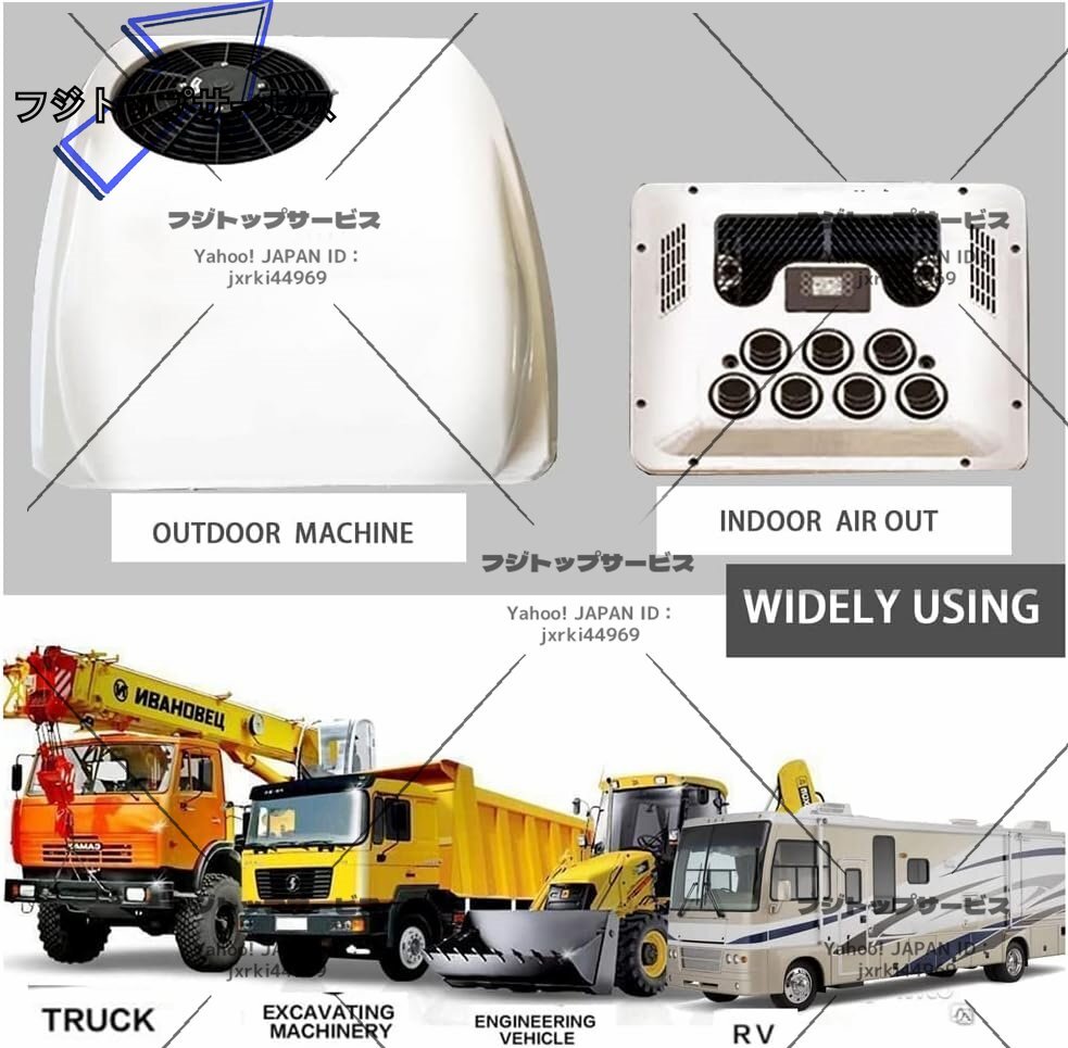12V DC エアコン、冷暖房機能付きルーフ エアコンは、トラック、RV、バス、掘削機、キャンピングカー、農業用車両に適用できます。